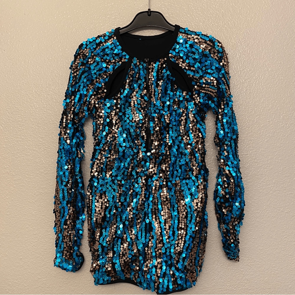 как выглядит WEISSMAN Dance 9898 Costume aqua blue gold allover sequin Biketard child LC фото