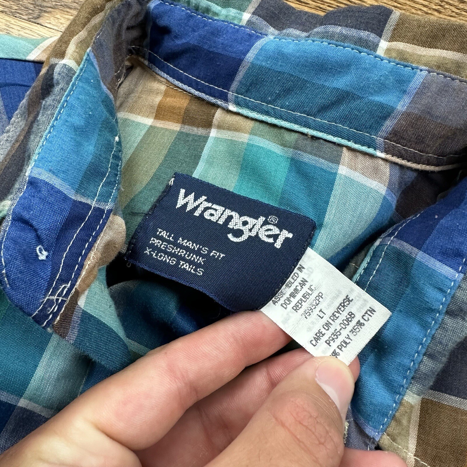 как выглядит VTG 80s Wrangler Pearl Snap Western Aztec Plaid Shirt X-Long Tails Size Large фото