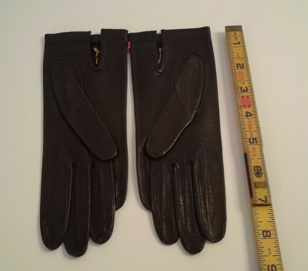 как выглядит Vintage 6/2" Black Leather Petite Short Dress Evening Gloves Embroidered MCM фото