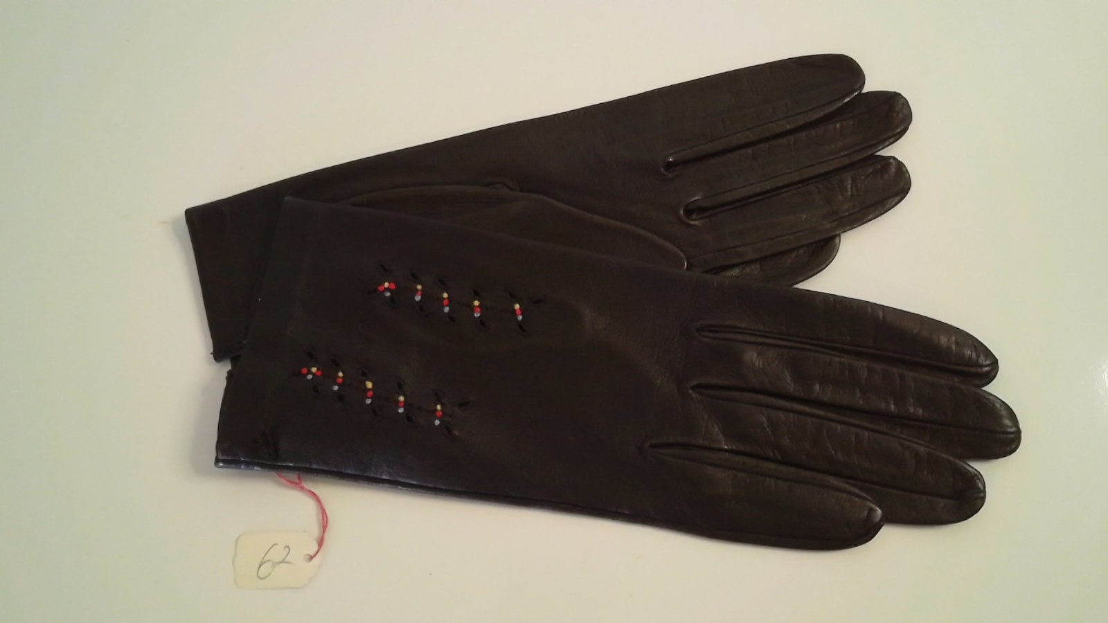 Vintage 6/2 Black Leather Petite Short Dress Evening Gloves Embroidered MCM
