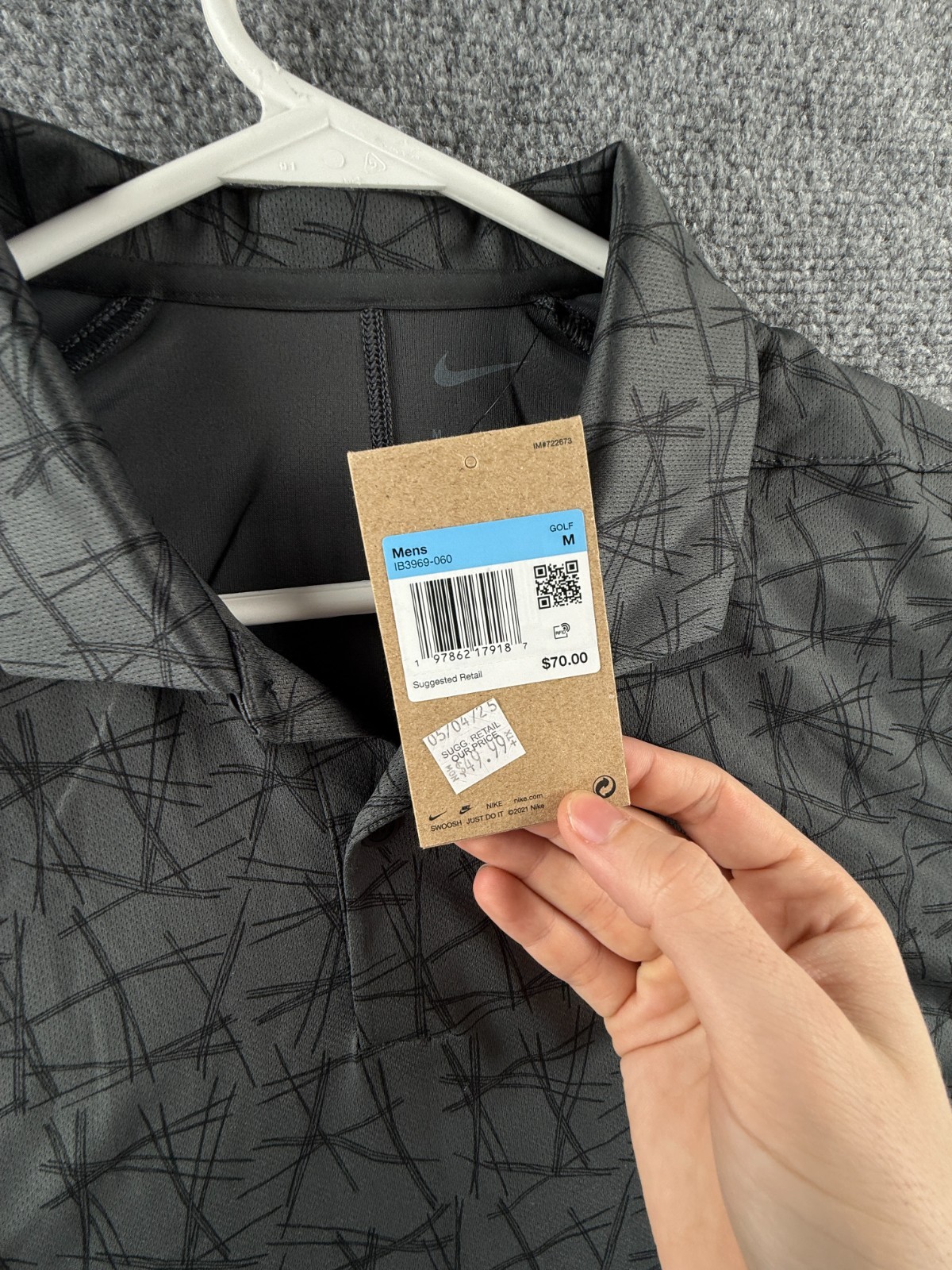 как выглядит NWT Nike Gray Geometric Polo Shirt Short Sleeve Wicking Golf Collared Polyester фото