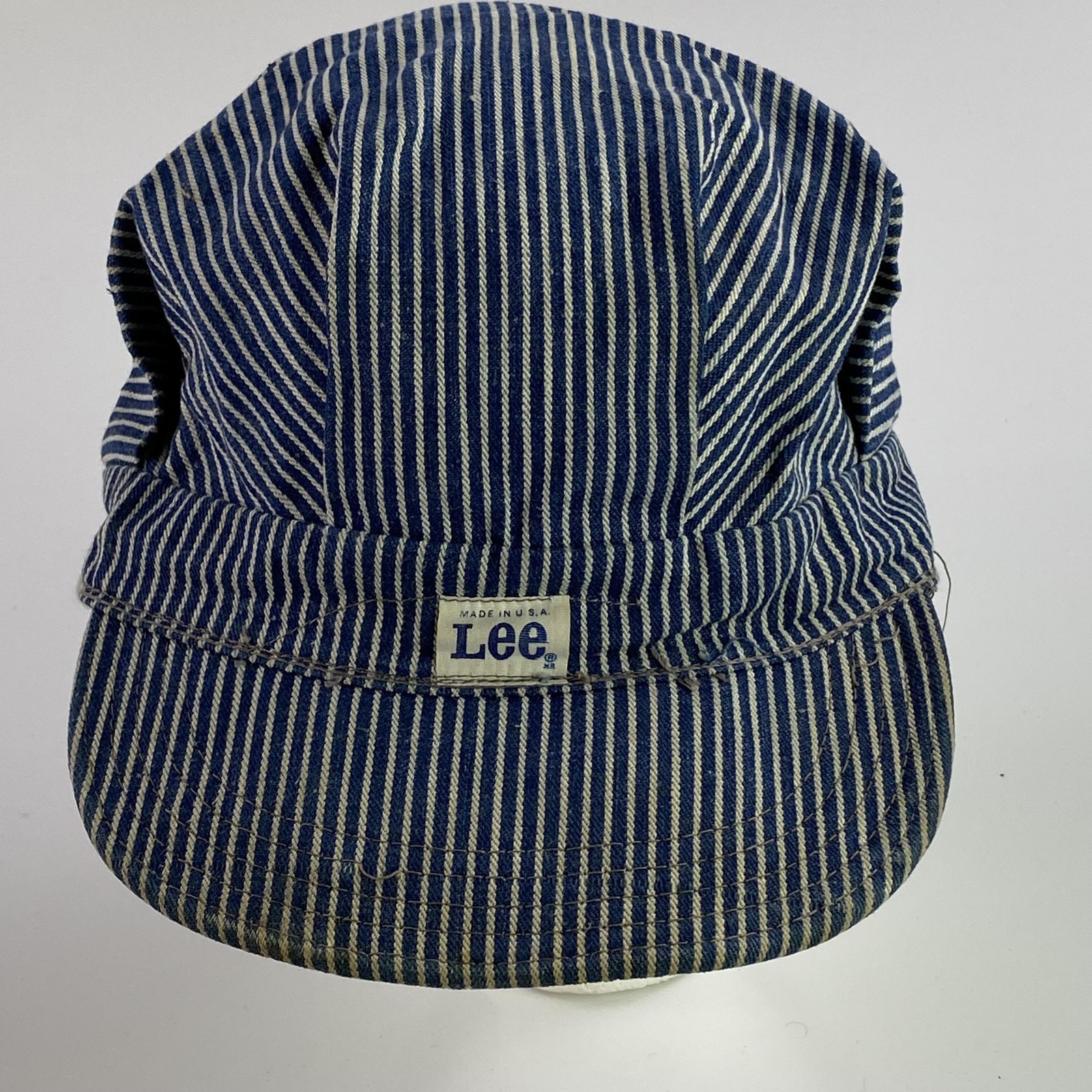 Vtg Lee fitted OS Hat Train Conductor Hickory Stripe Railroad Engineer Mens 80s