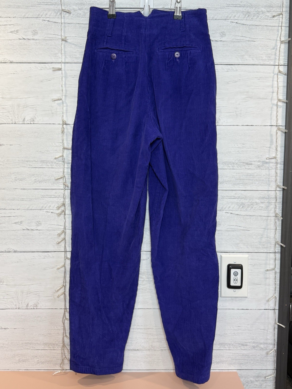 как выглядит 80s 90s Vntg Purple Cotton Corduroy Tapered Pleated Pant 3/4 Womens High Waisted фото