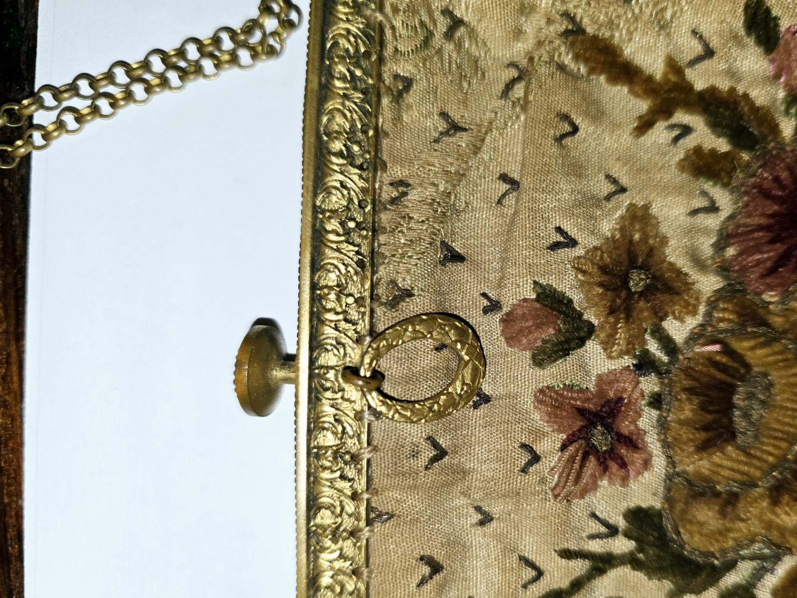 Antique Needlepoint Evening Bag Floral Brass Tone Hardware