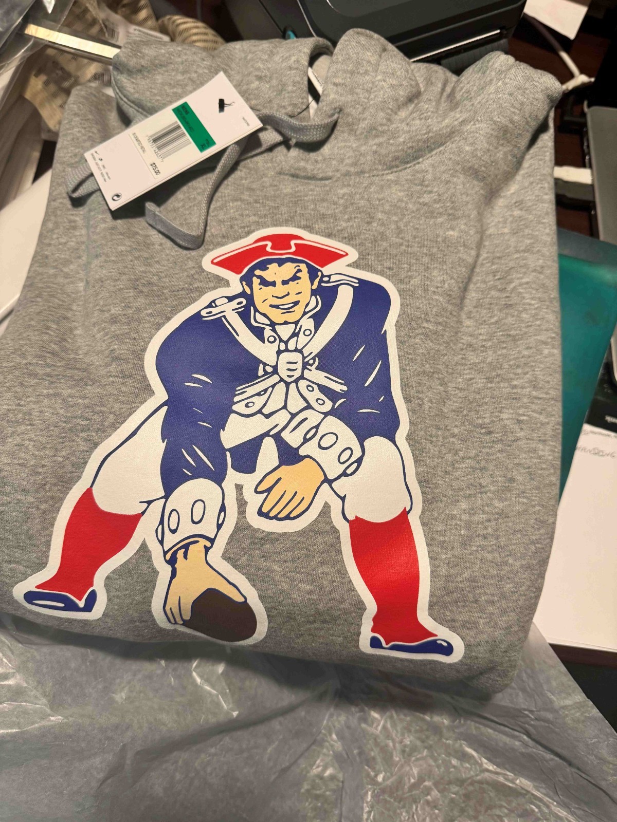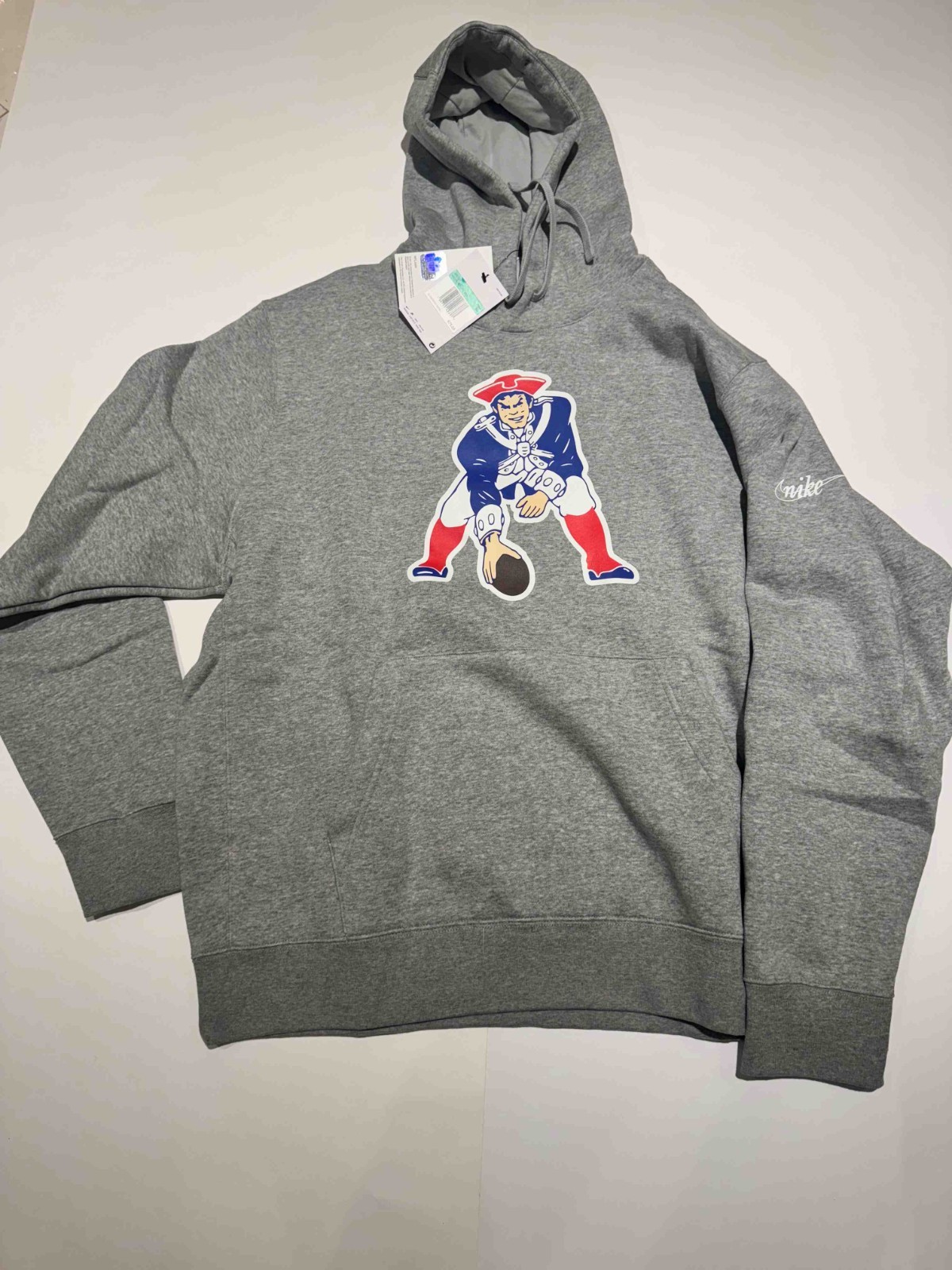 как выглядит NEW ENGLAND PATRIOTS Mens Nike Heather Gray Logo Pullover Hoodie NWT фото