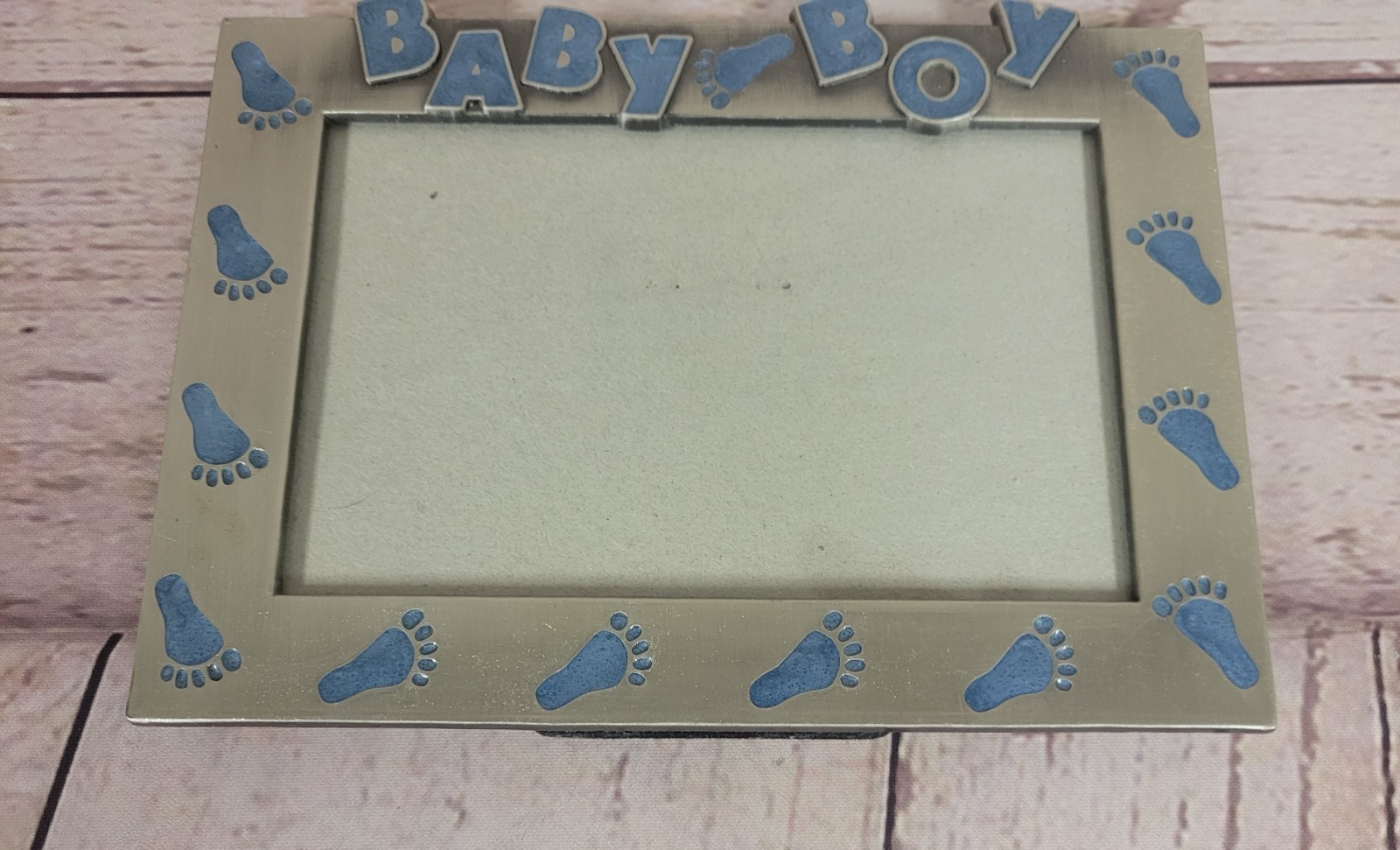 Picture Frame Pewter Fits 4x6 Baby Boy Feet Velvet Backing Free Standing Mini