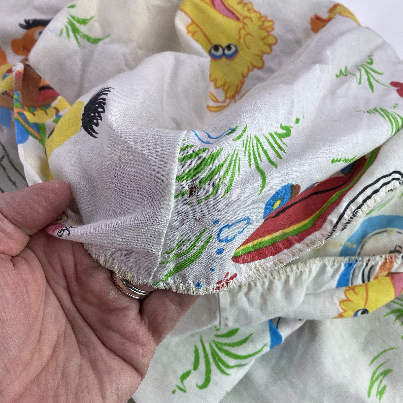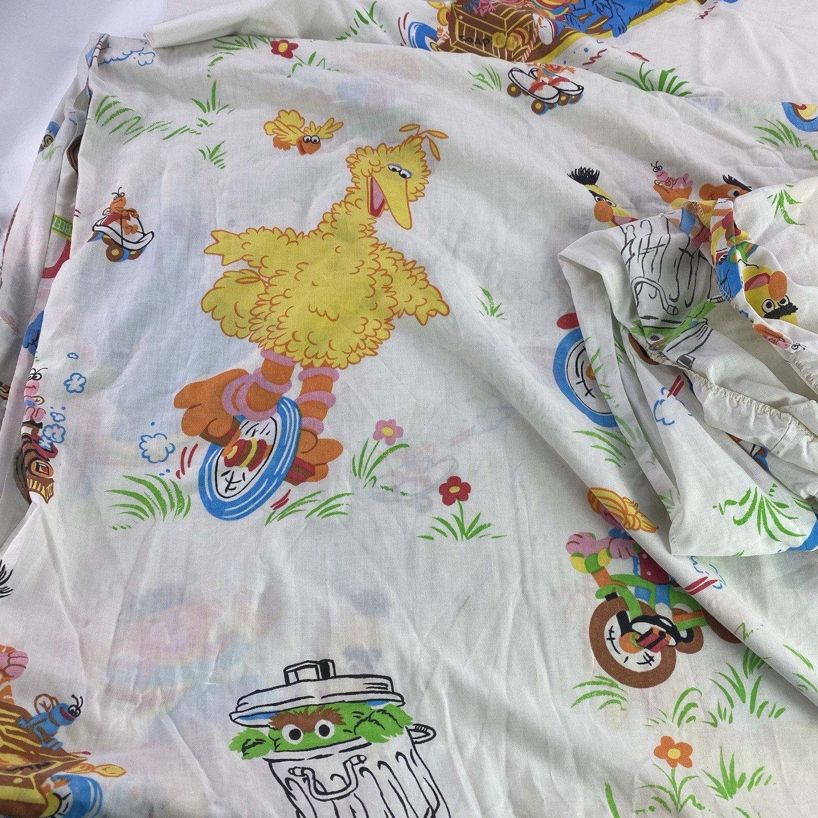 Vtg Sesame Street Twin Flat Fitted Sheets 2 Pillow Cases linens bedding