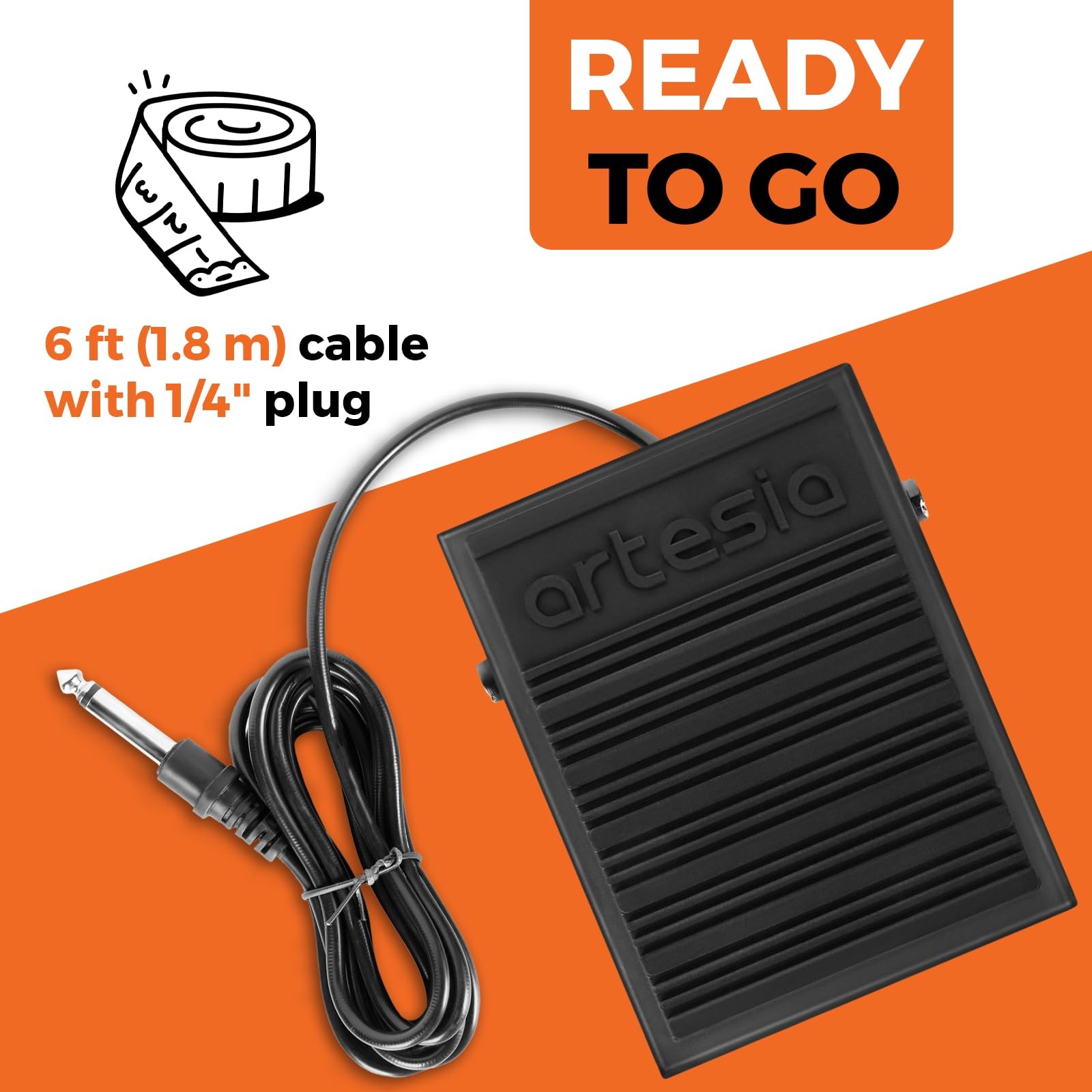 ASP-1 Universal Sustain Pedal with 6 ft 1.8 m Cable, Polarity Switch, and N...