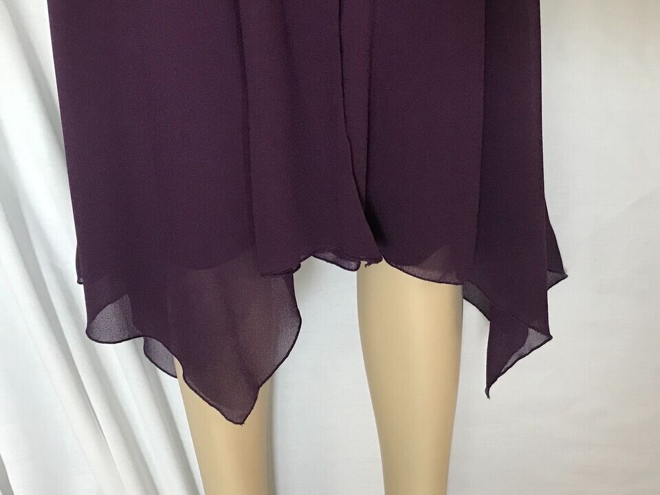 как выглядит Purple Crepe Sweetheart Dress, Handkerchief Hem, Keyhole Bodice, Sizes 3/4 фото
