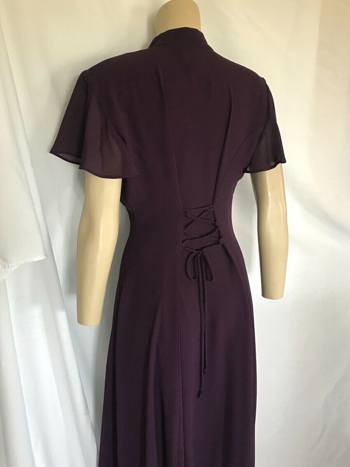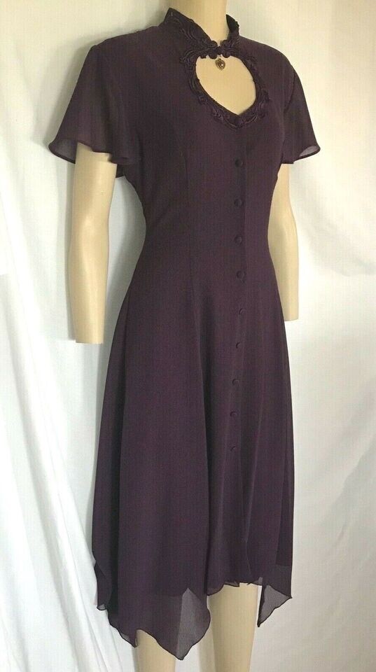Purple Crepe Sweetheart Dress, Handkerchief Hem, Keyhole Bodice, Sizes 3/4