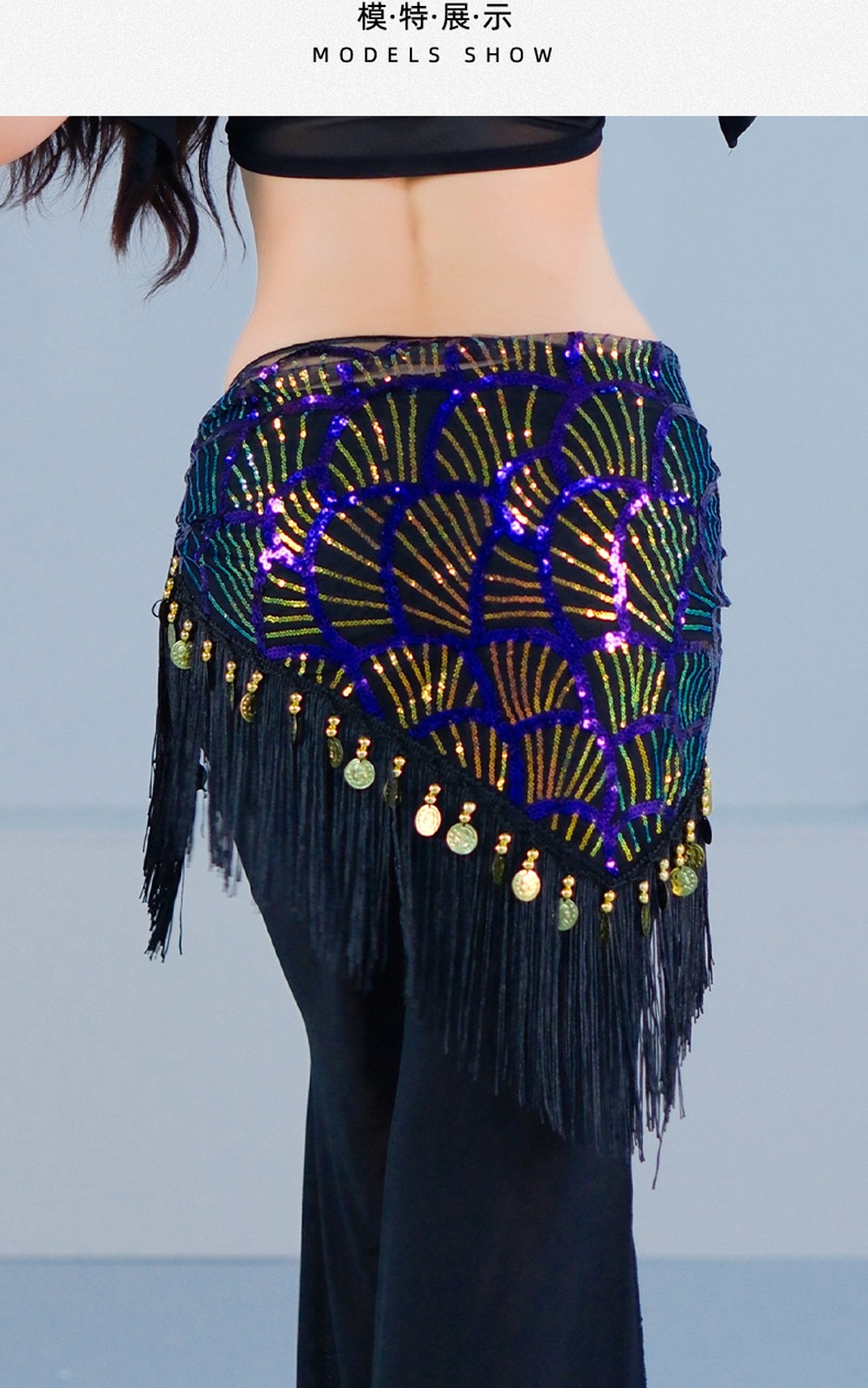 Belly Dance Hip Scarf Tassel Waist Chain Waist Shinning Sequins Ornament