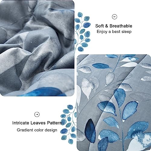 7 Piece Navy Botanical Bed in a Bag Floral Comforter Set - Elegant King Blue