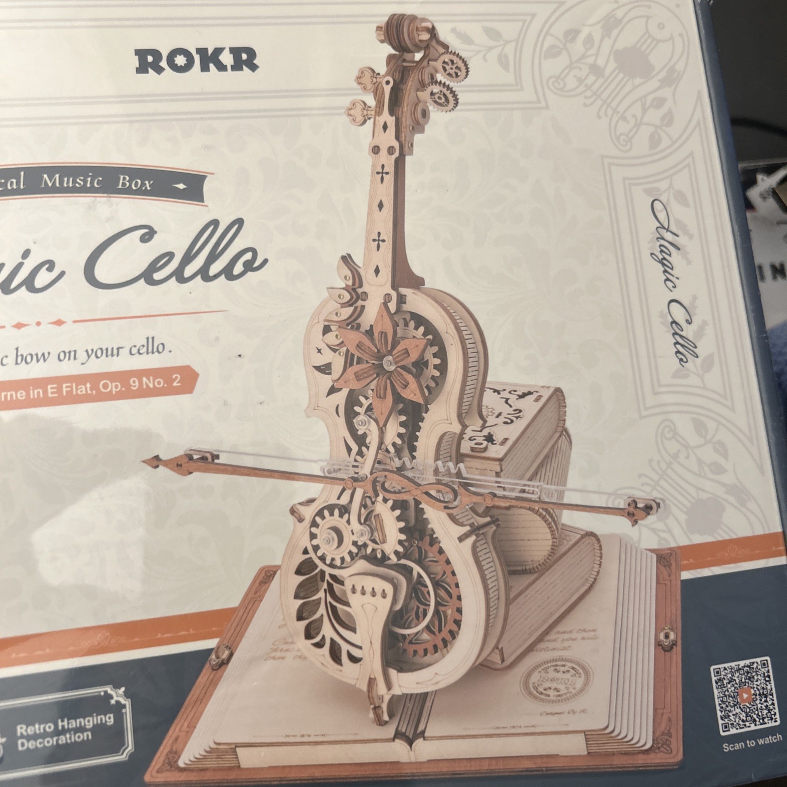 как выглядит ROKR Magic Cello Mechanical Music Box 3D Wooden Puzzle Model Kit Stem Project фото