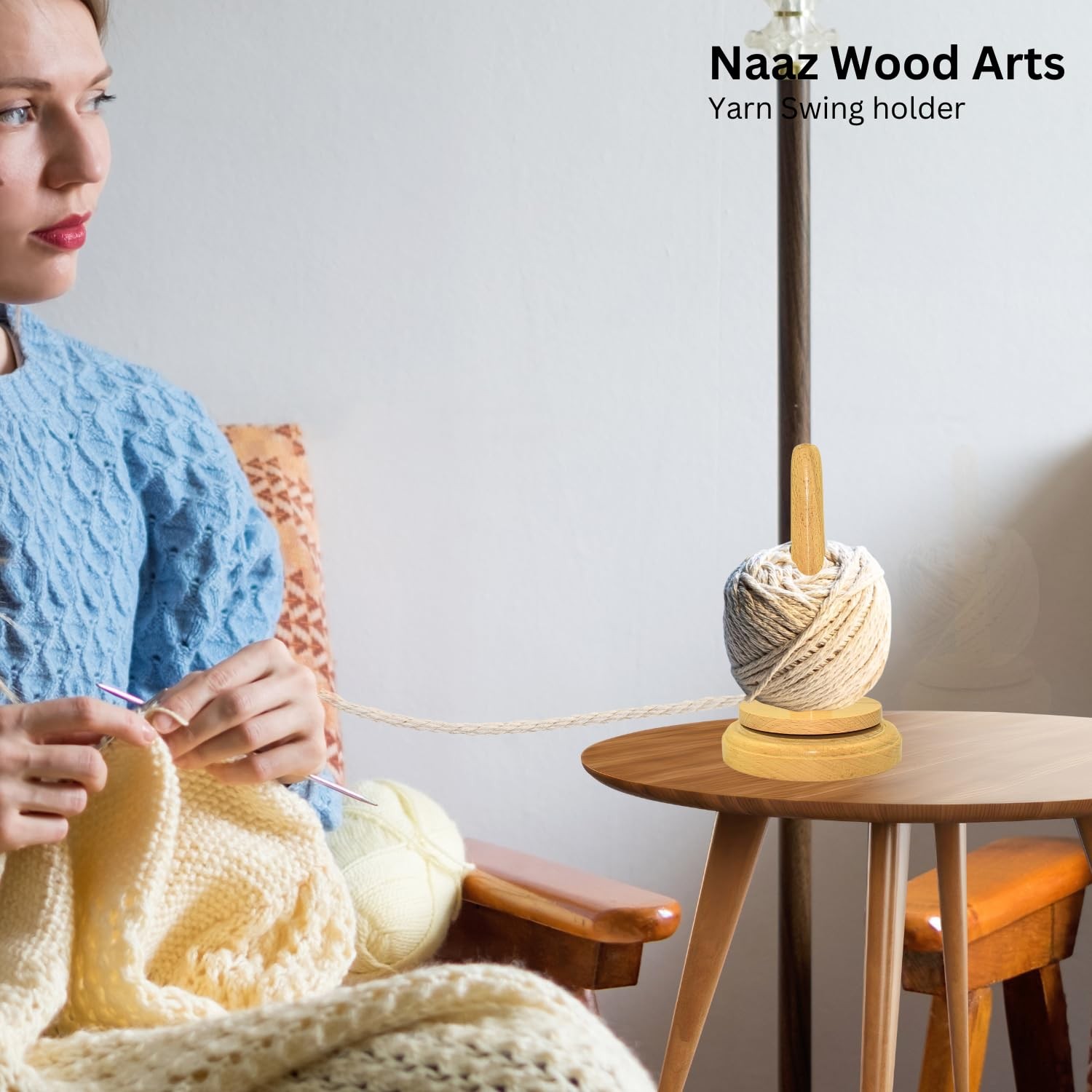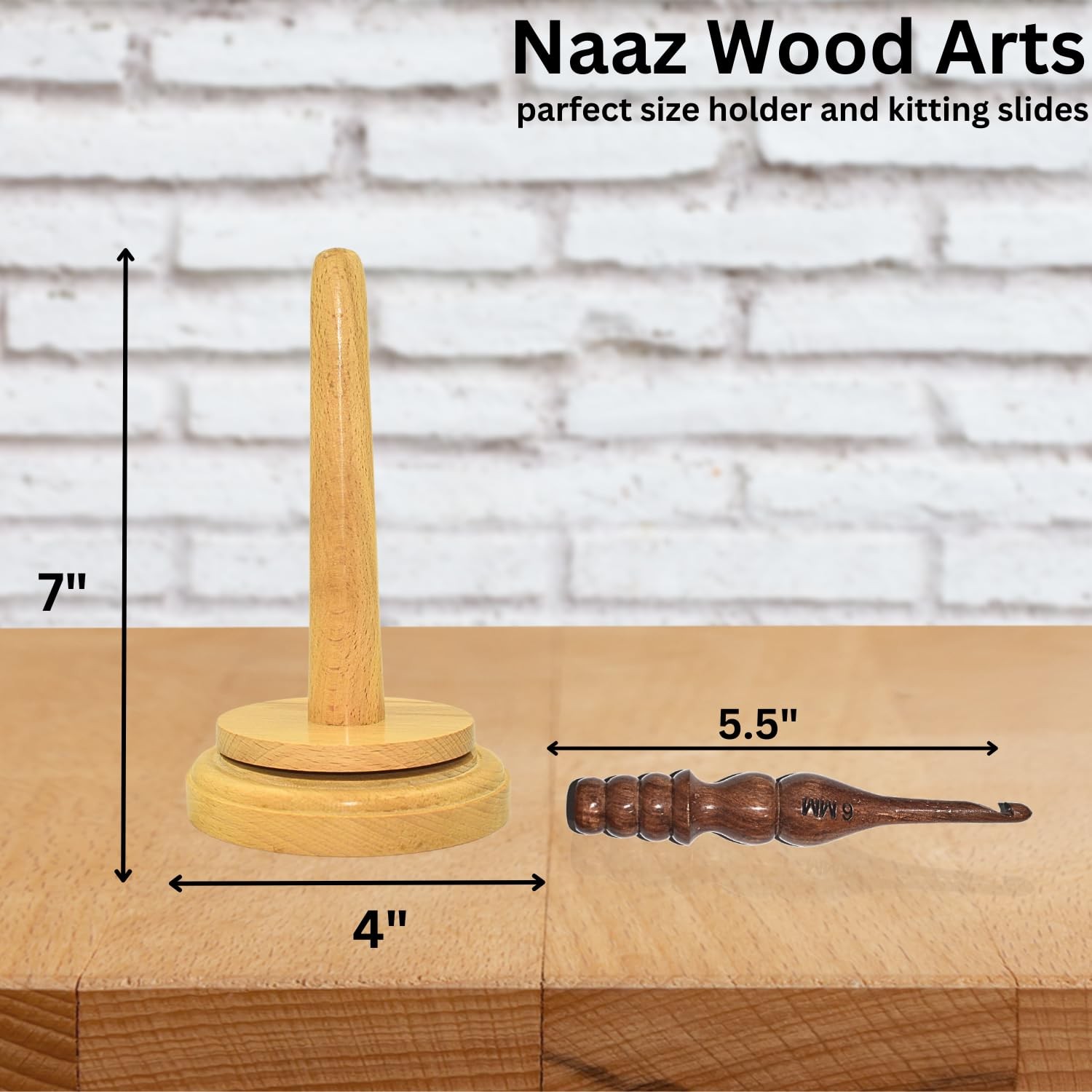 Wood Yarn Holder Crochet Hook with Wooden Yarn Holder, Wooden Rolling Hol...