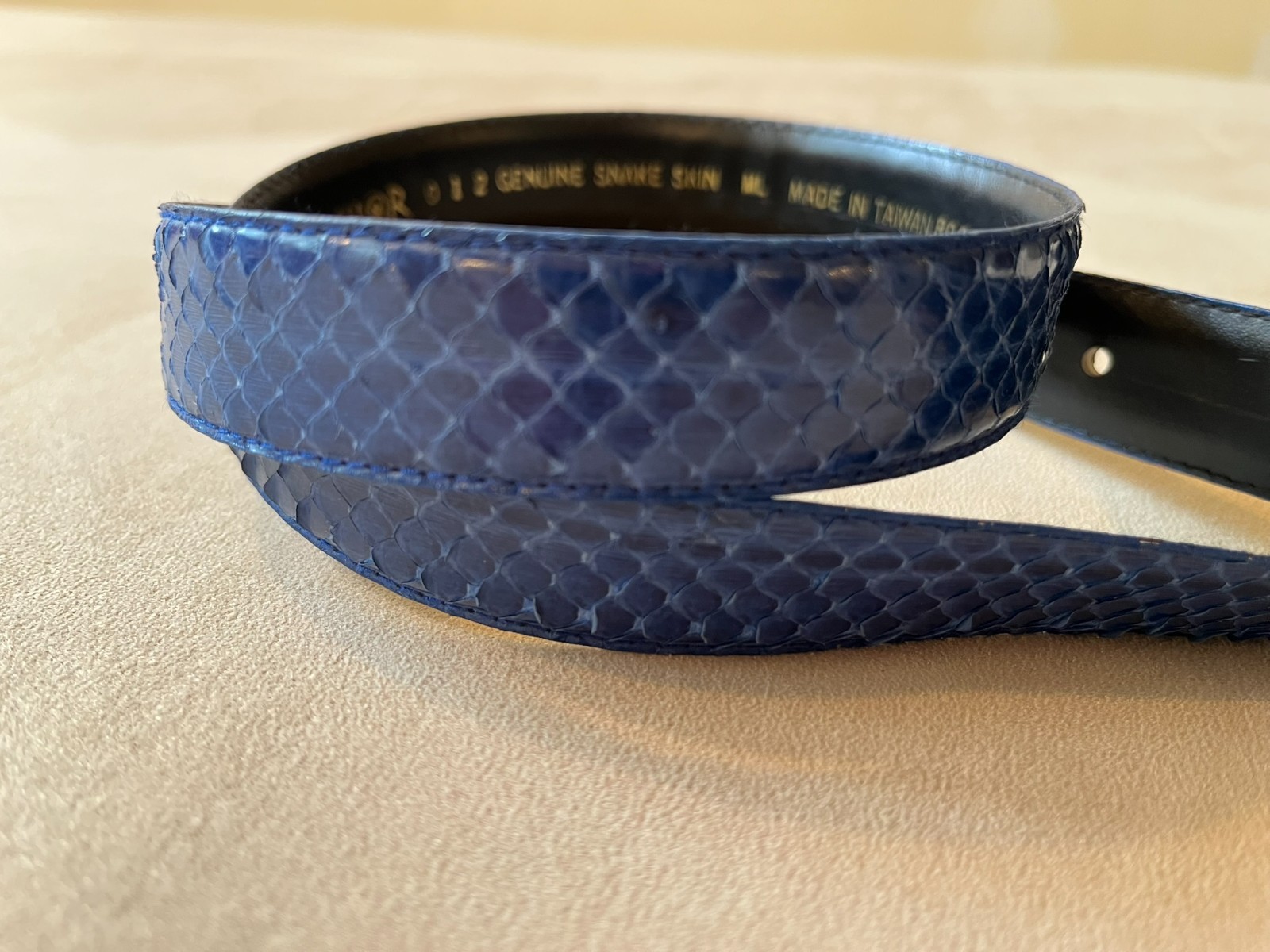 как выглядит Vintage Milor Genuine Blue Snake Skin Belt w/ Gold Accents  Size 28 34 фото