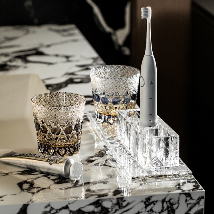Set Includes: Toothbrush Holder, tray, Diamond Cut Cups