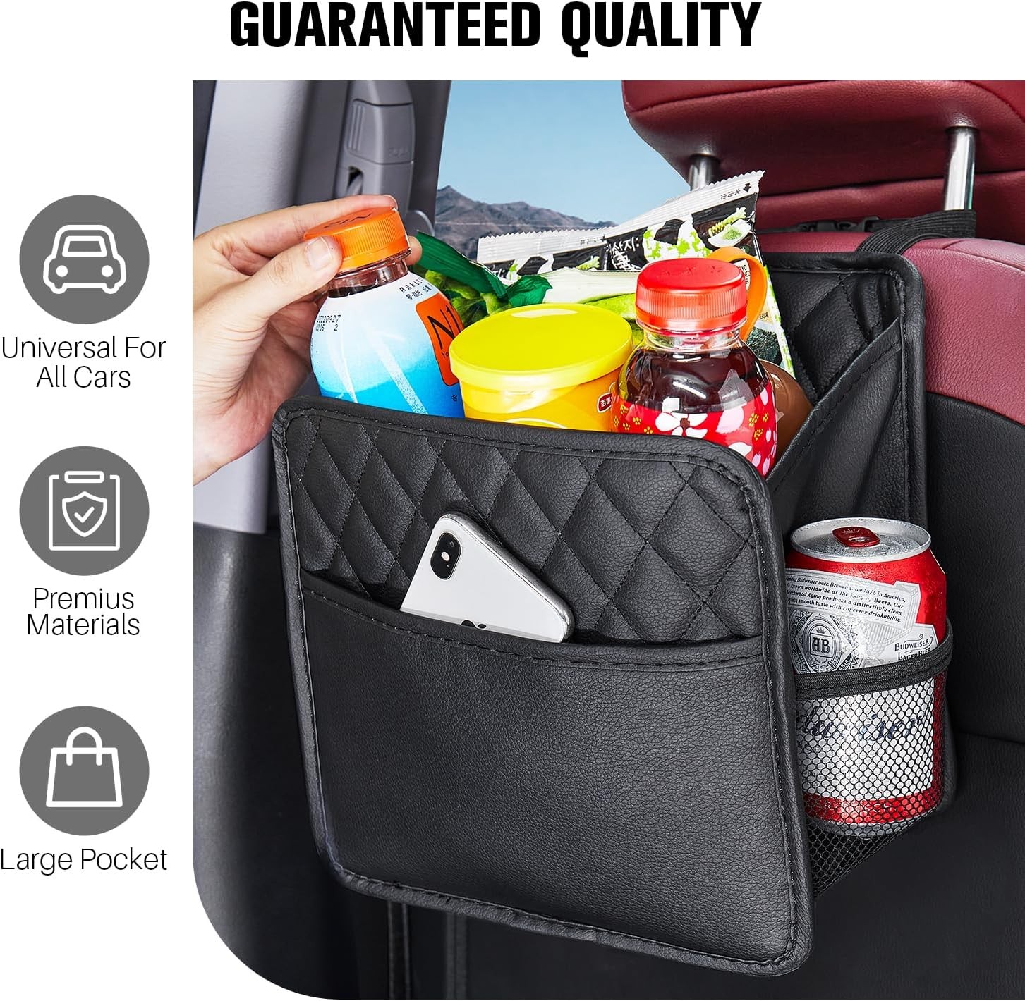 Car Organizer Back Seat, 2 Pack Waterproof Pu Leather Car Black 2Pack Large