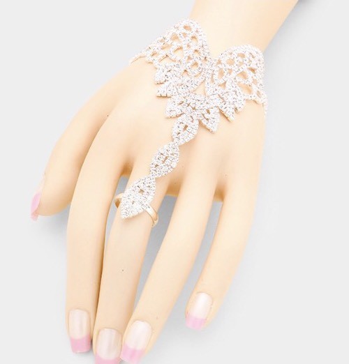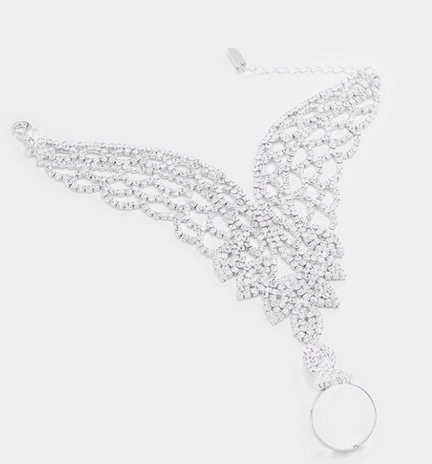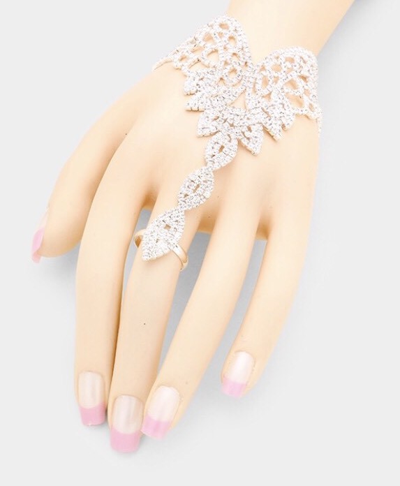 Silver Clear White Crystal Rhinestone Wedding Slave Hand Chain Ring Bracelet