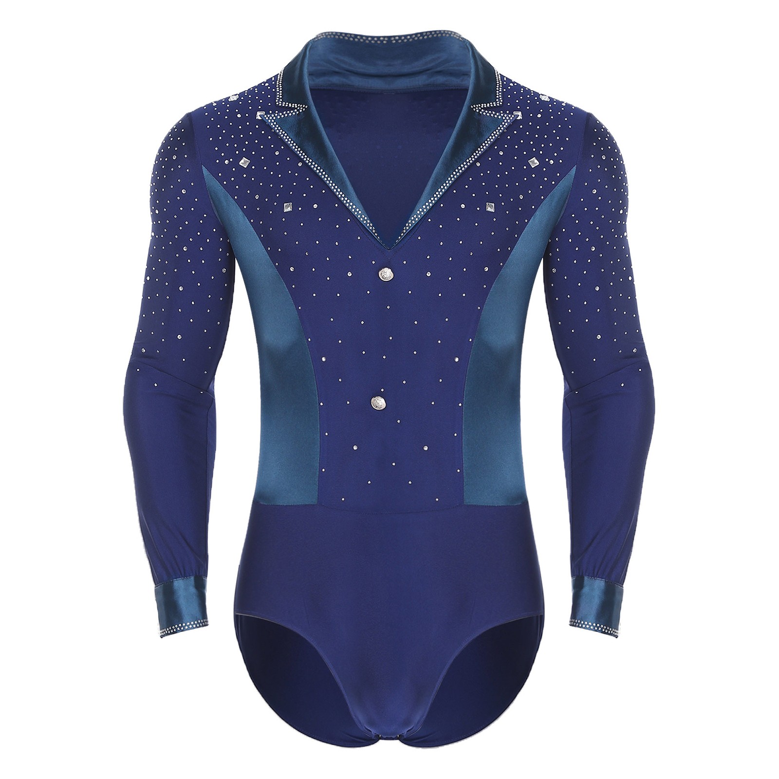 как выглядит Mens Dancewear Straplers Bodysuit V-Neck Jumpsuit Catsuit Leotard Shiny Dance фото