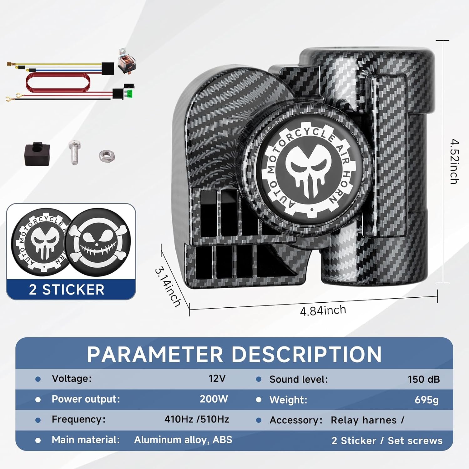 150dB Train Horn for Motorcycle Truck Horns 12V Super Loud-Black - A