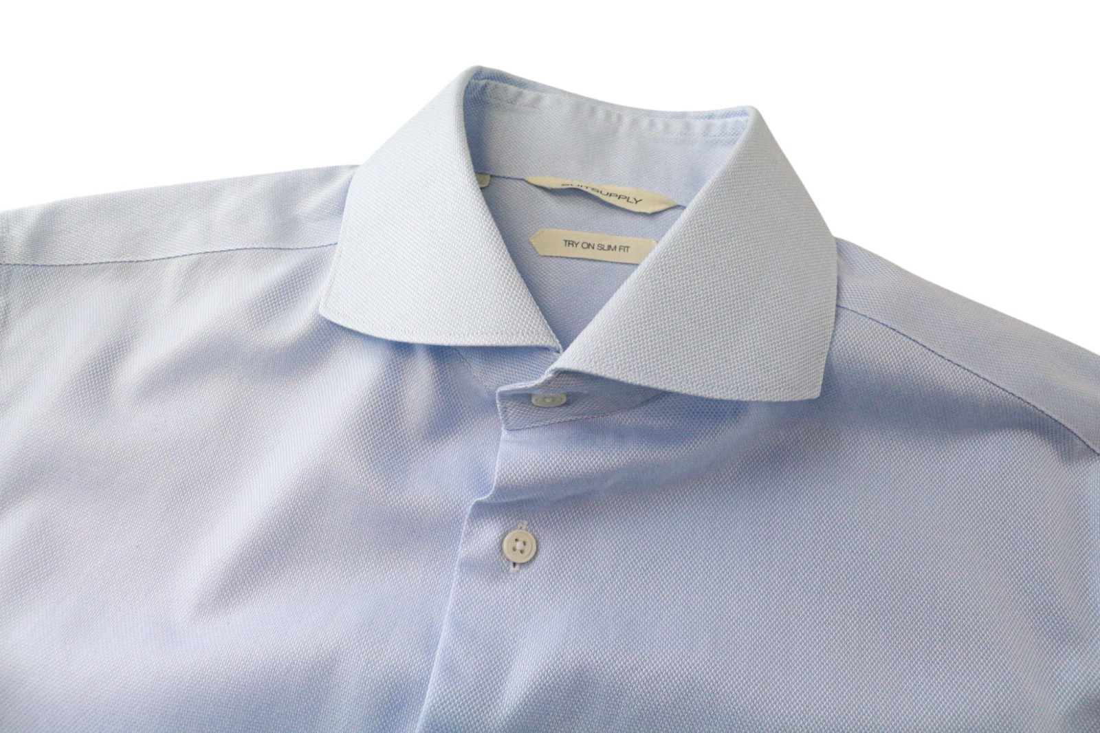 SUITSUPPLY Men's Formal Shirt 39L/15 1/2L Slim Blue Pure Cotton Cutaway