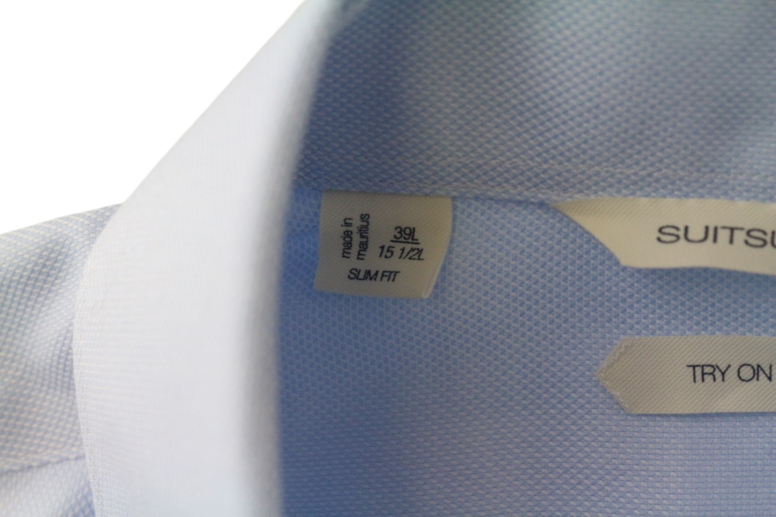 как выглядит SUITSUPPLY Mens Formal Shirt 39L/15 1/2L Slim Blue Pure Cotton Cutaway фото