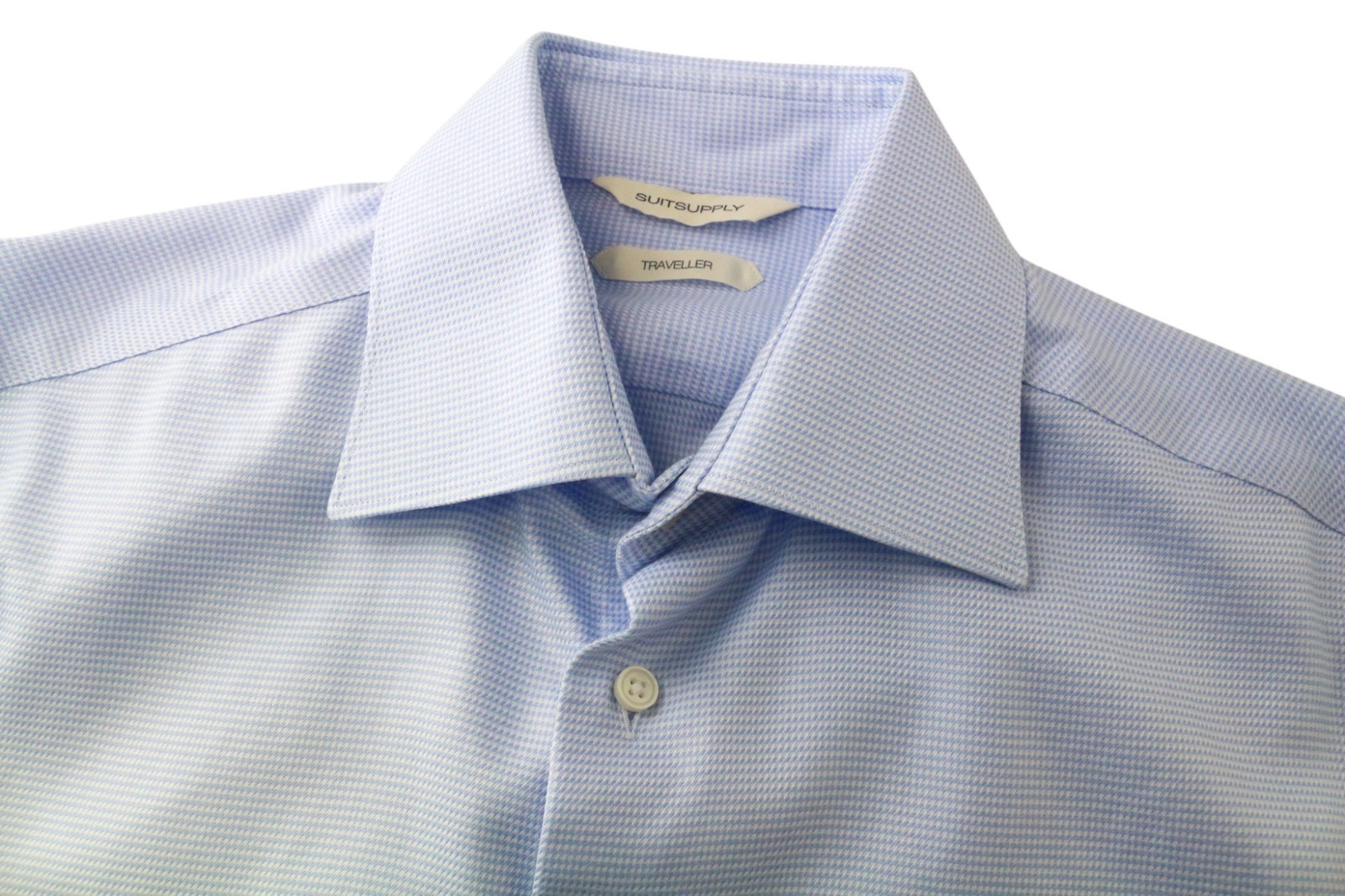 как выглядит SUITSUPPLY Traveller Mens Formal Shirt 37/14 1/2 Slim Blue Cotton Twill фото