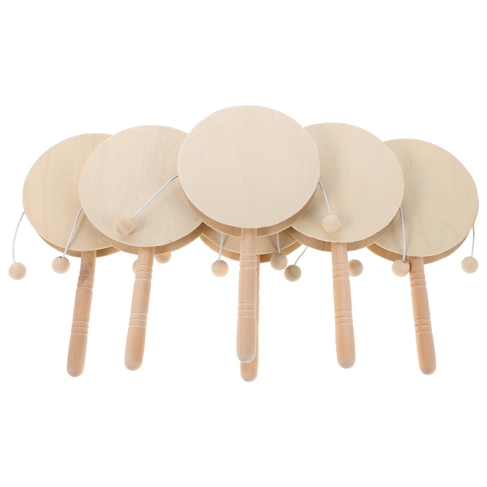 6 Pcs Kids Blank Rattle Unfinished Wooden Percussion Drum-shaped