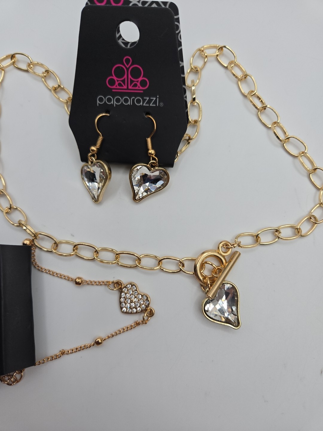 PAPARAZZI JEWELRY Necklace And Earring Set NWT GoldTone With Heart/ Bracelet