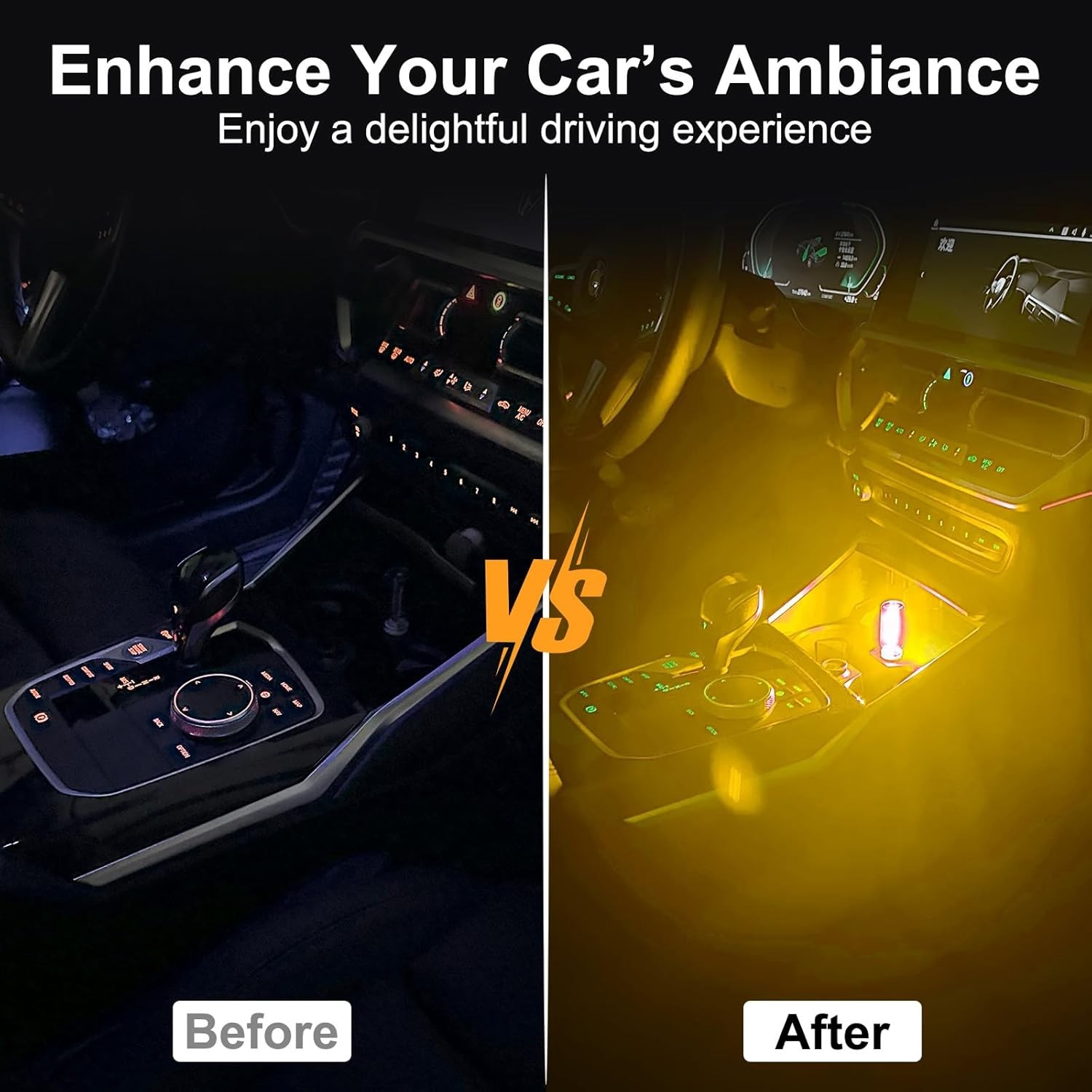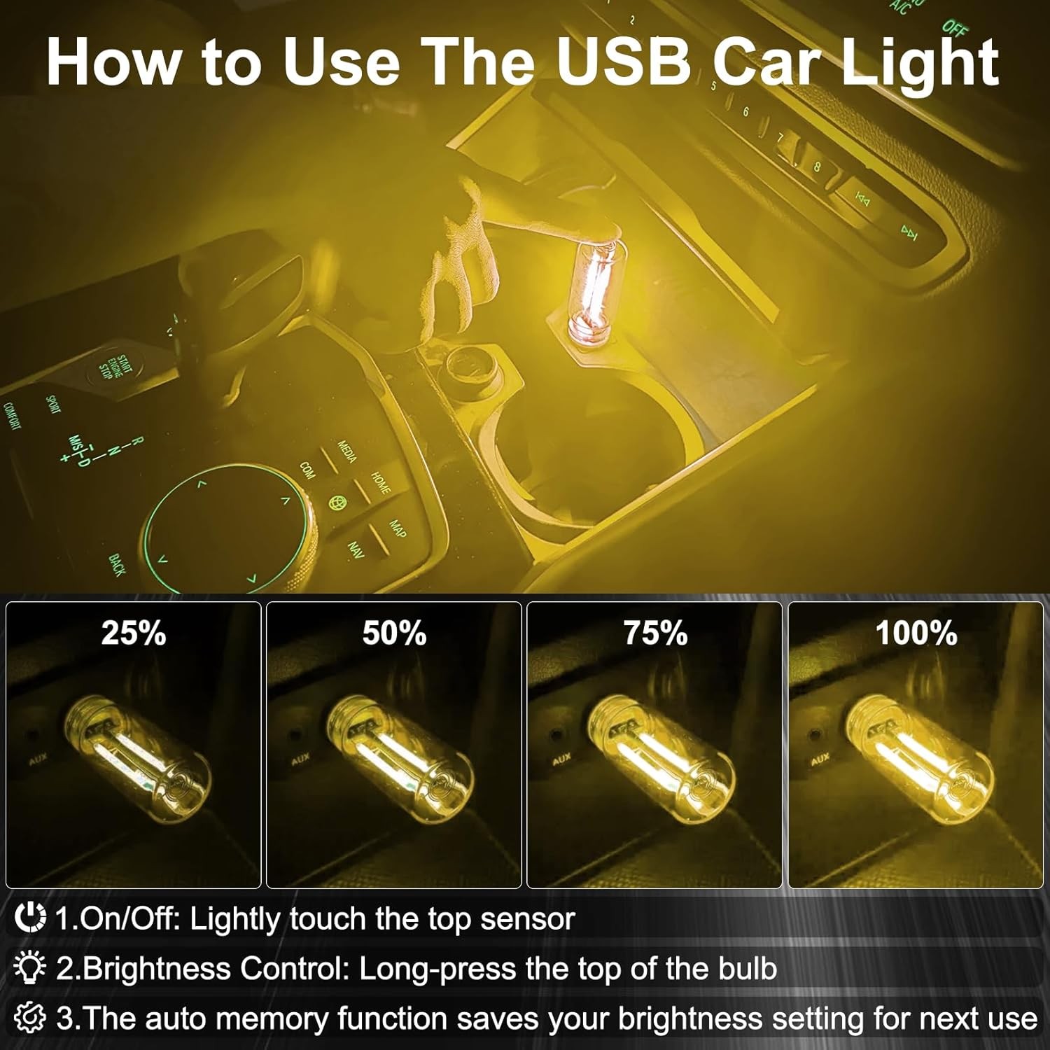 2 PCS USB Night Light Bulb, Touch Dimmable Interior Ambient Lights, yellow