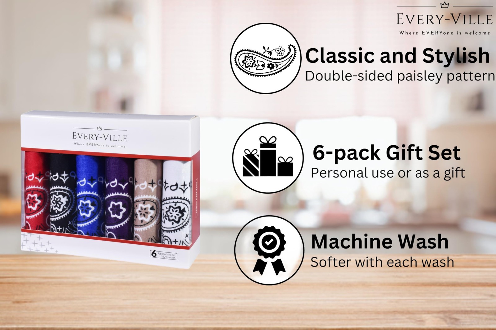 6-Pack 100 Cotton Bandanas Holiday Gifts for Men Women Assorted Colors