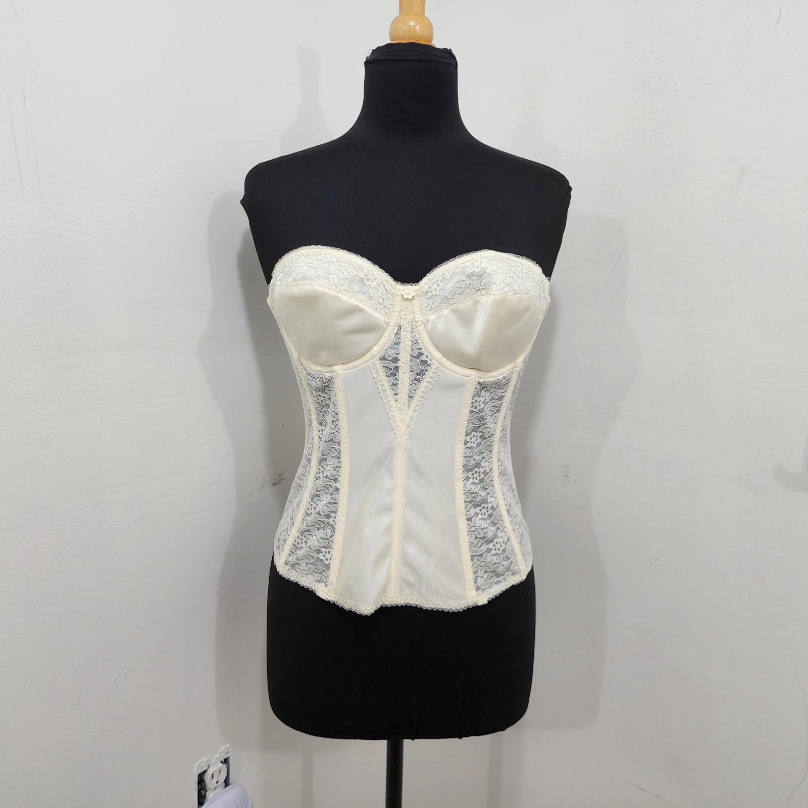 как выглядит Vintage 90s Dominique Colette Lace Corset Strapless Bra Ivory Bustier Womens 38B фото