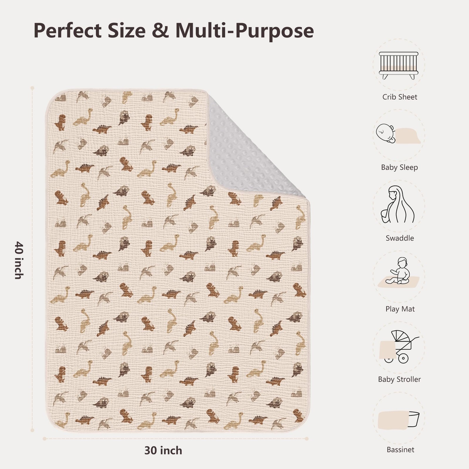 Baby Blanket for Unisex Boys Girls, Soft Nursery Minky Blanket with Muslin Co...