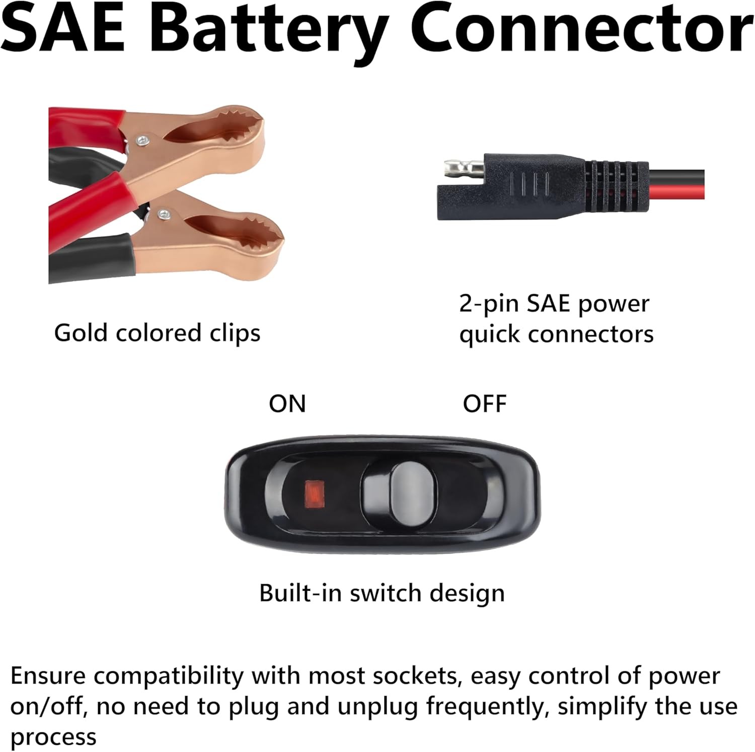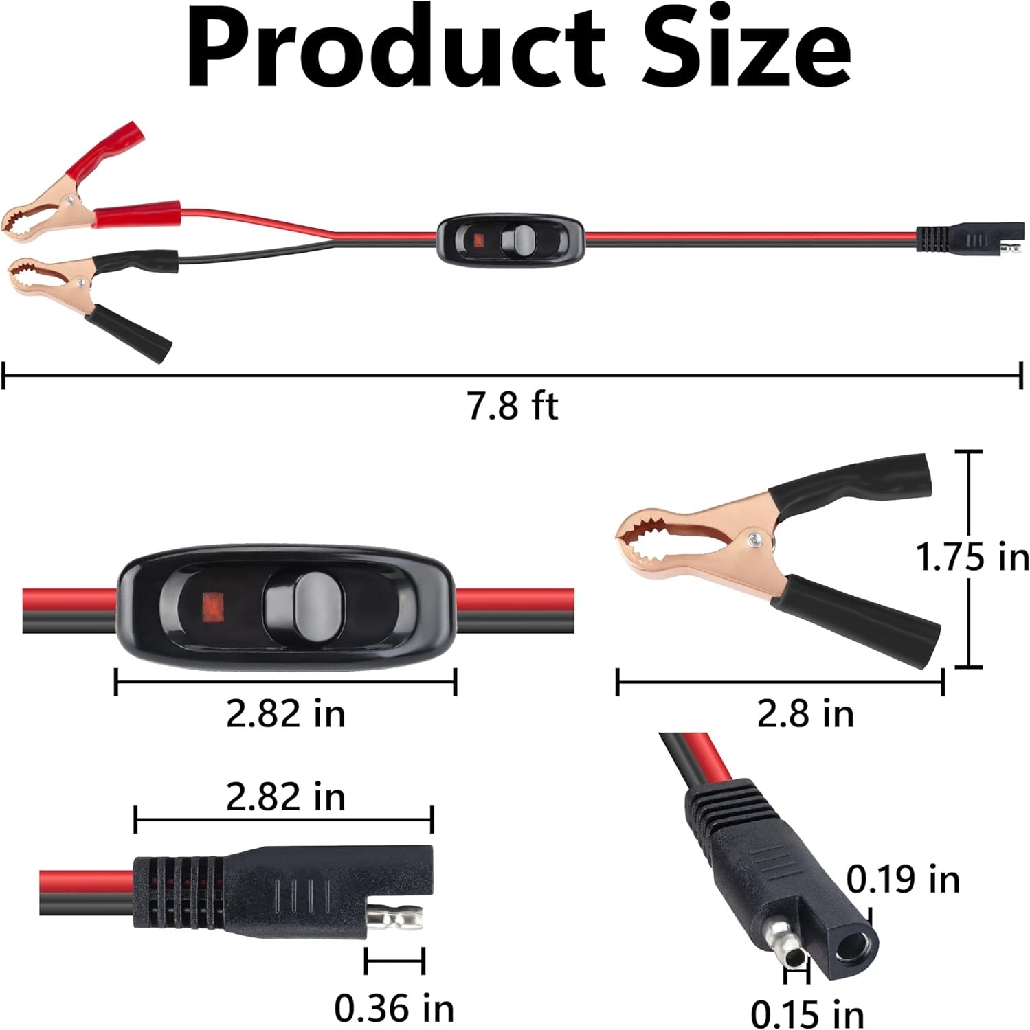 7.8FT 16AWG Wire Harness with On/Off Switch, 12V Auto Alligator Clips Gold