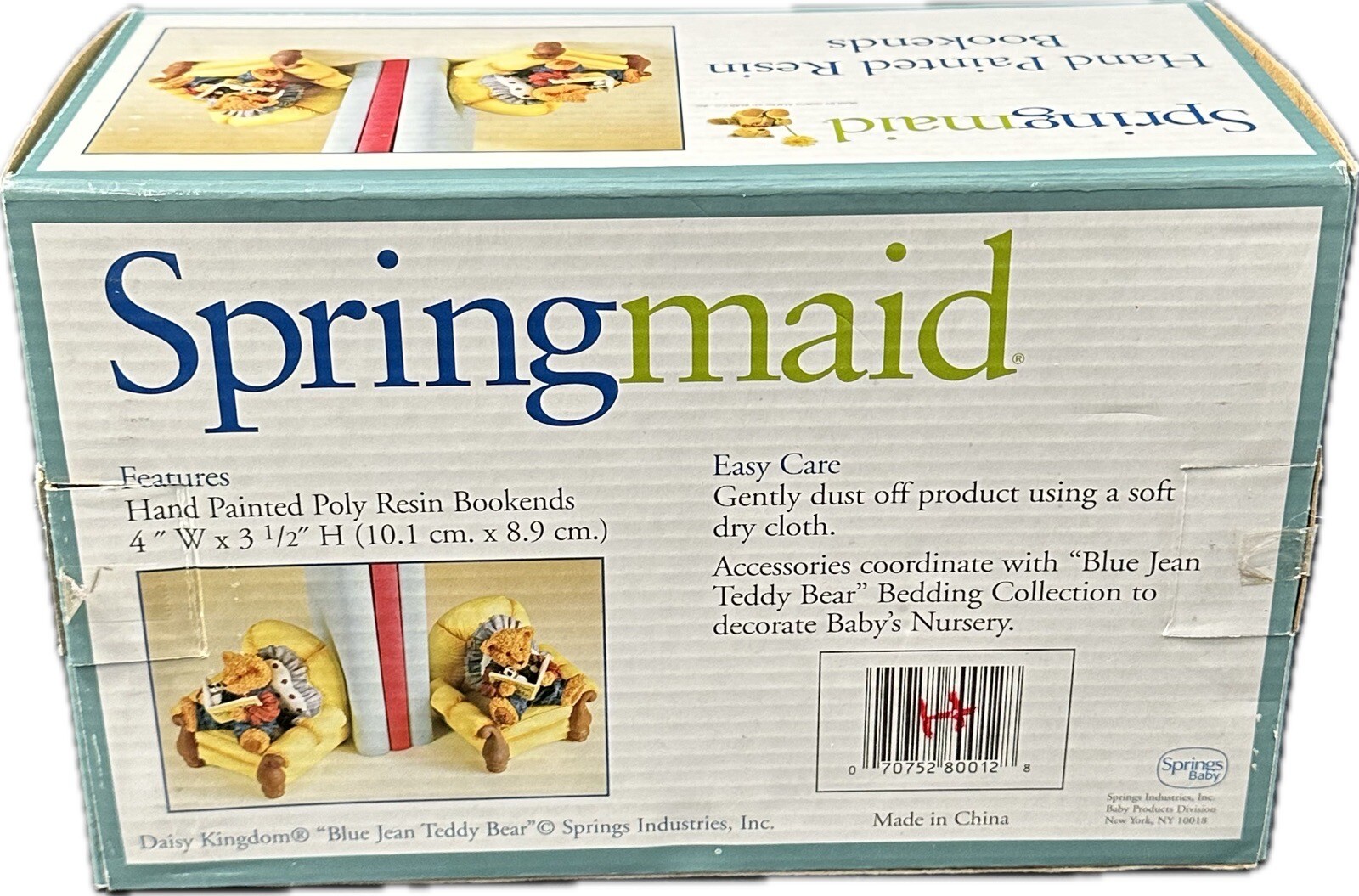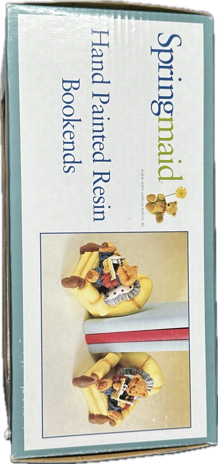 Vintage Kids Springmaid Hand Painted Poly Resin Teddy Bear Bookends New in Box