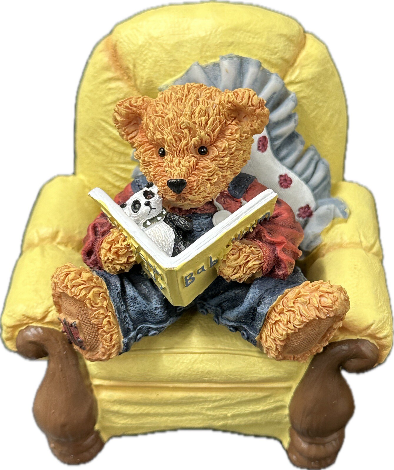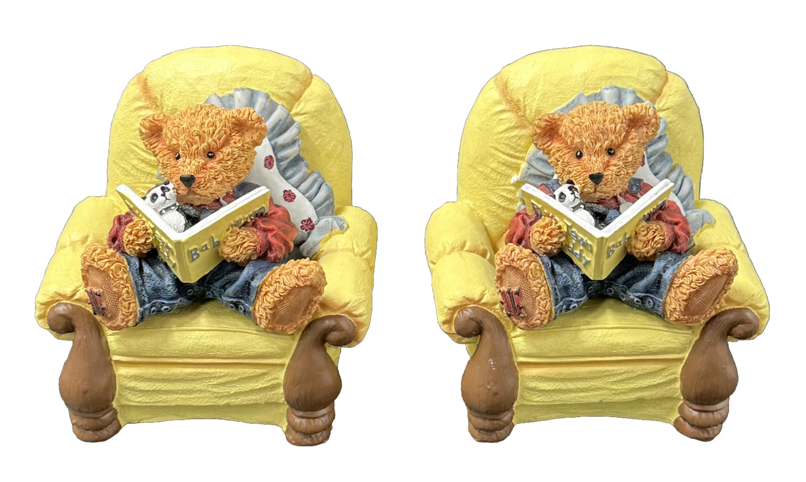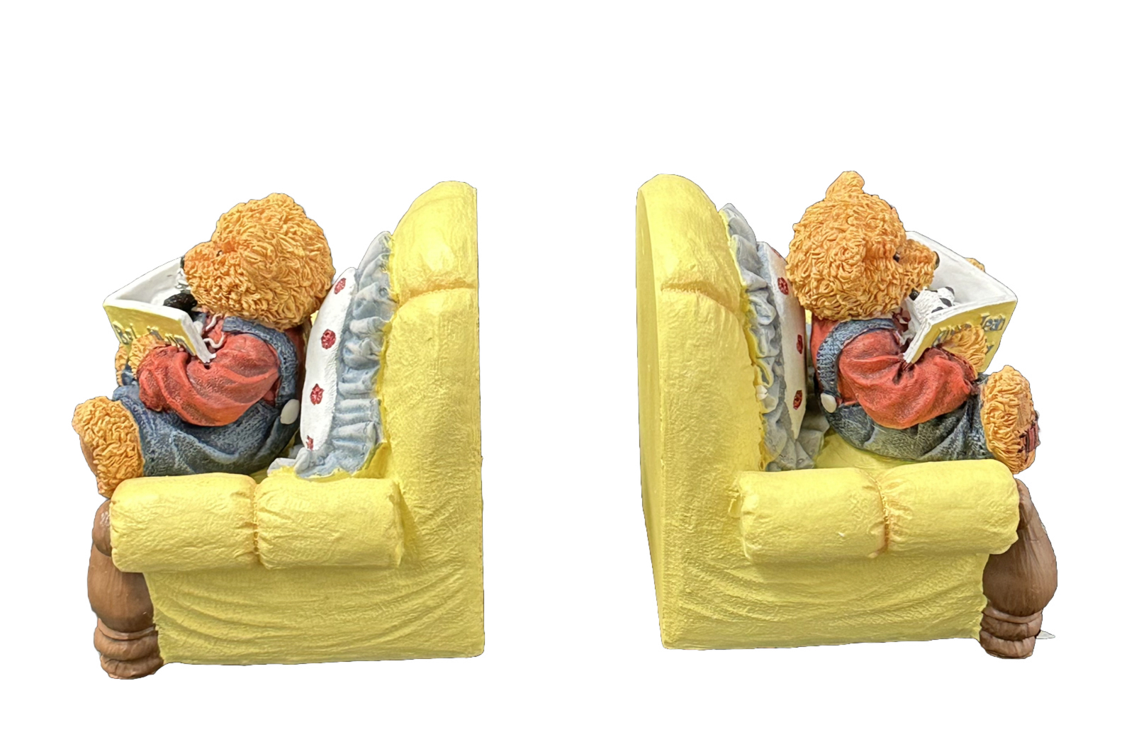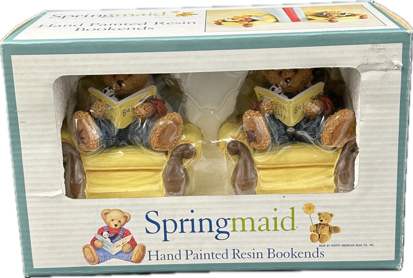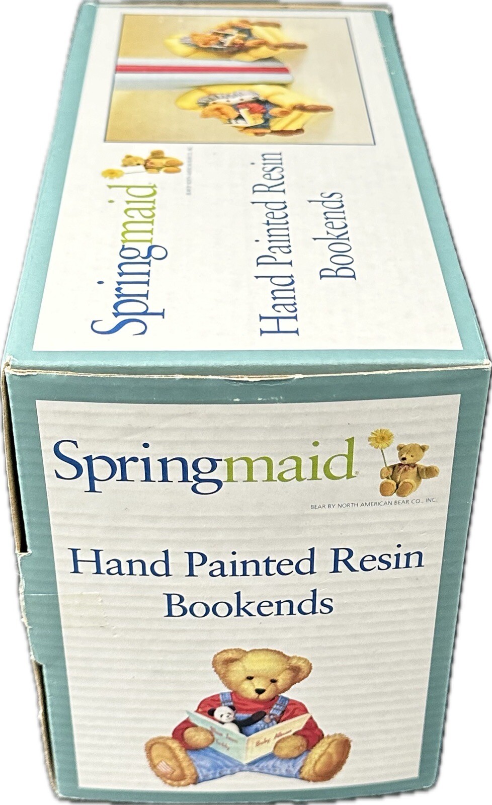 • Vintage Kids Springmaid Hand Painted Poly Resin Teddy Bear Bookends New in Box
