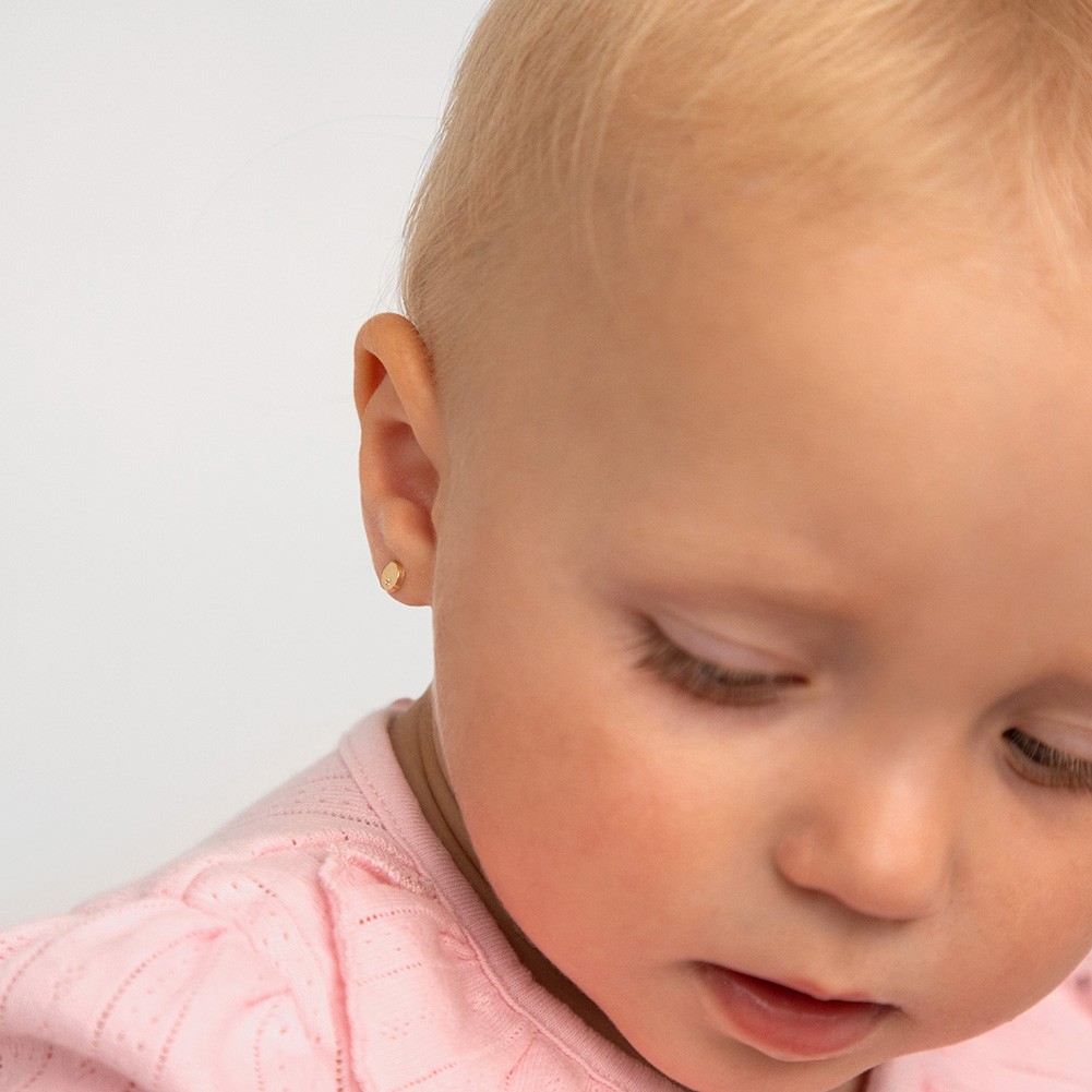 как выглядит 14k Gold Delicate CZ Clear Kids / Childrens / Girls Earrings Safety Screw Back фото