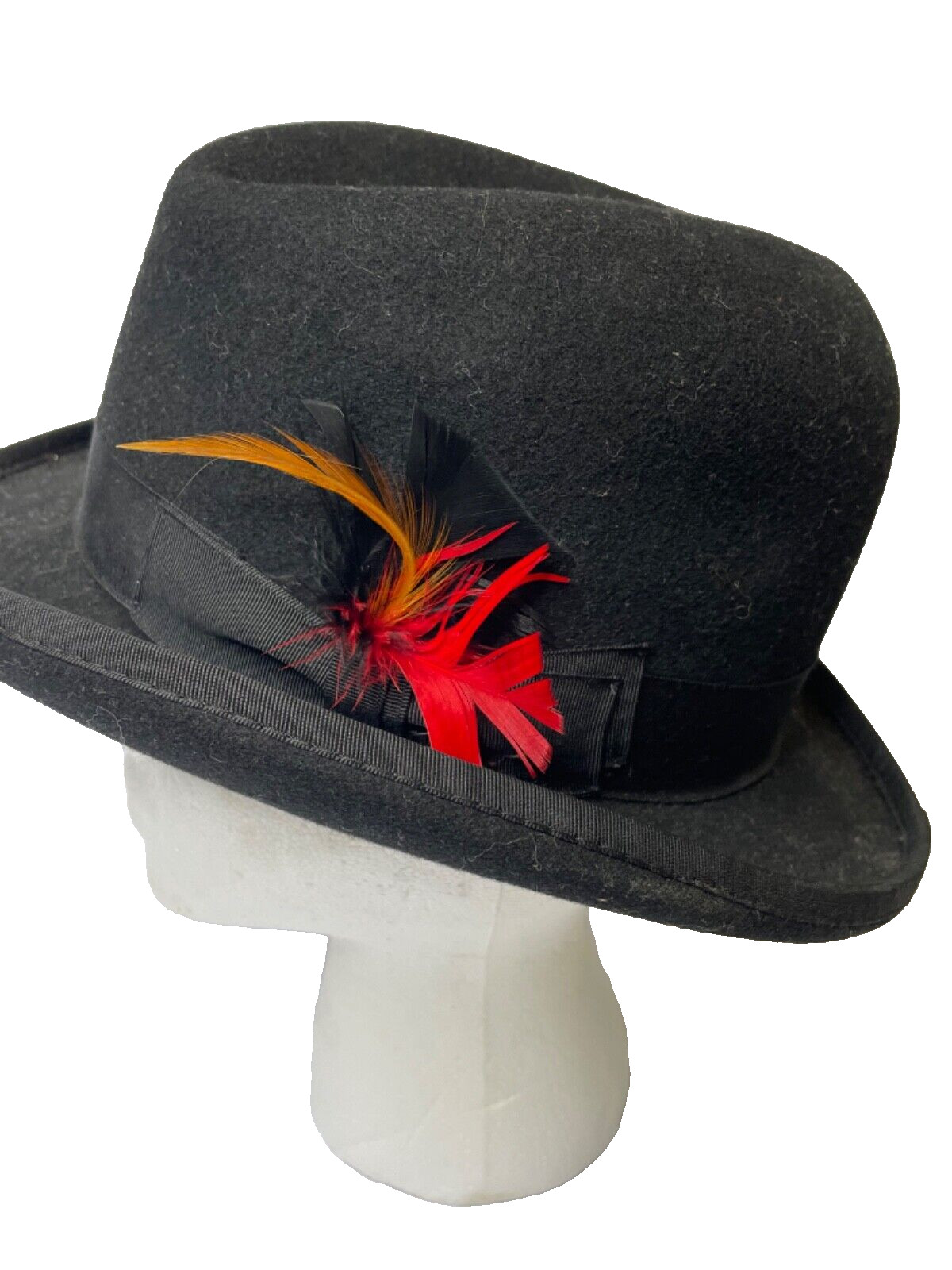 Scala Classico Felt Bowler Derby Hat Wool Black Dorfman Feather Mens Size M