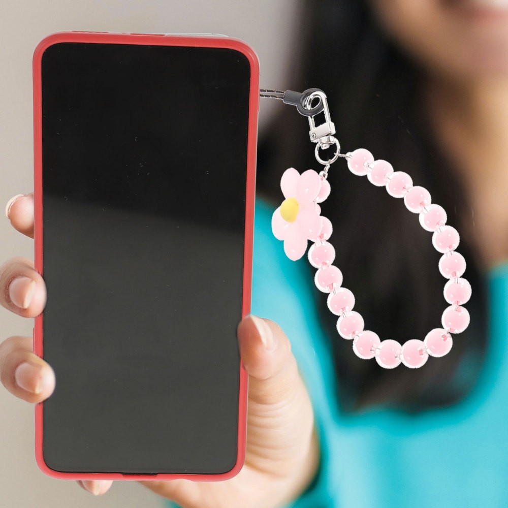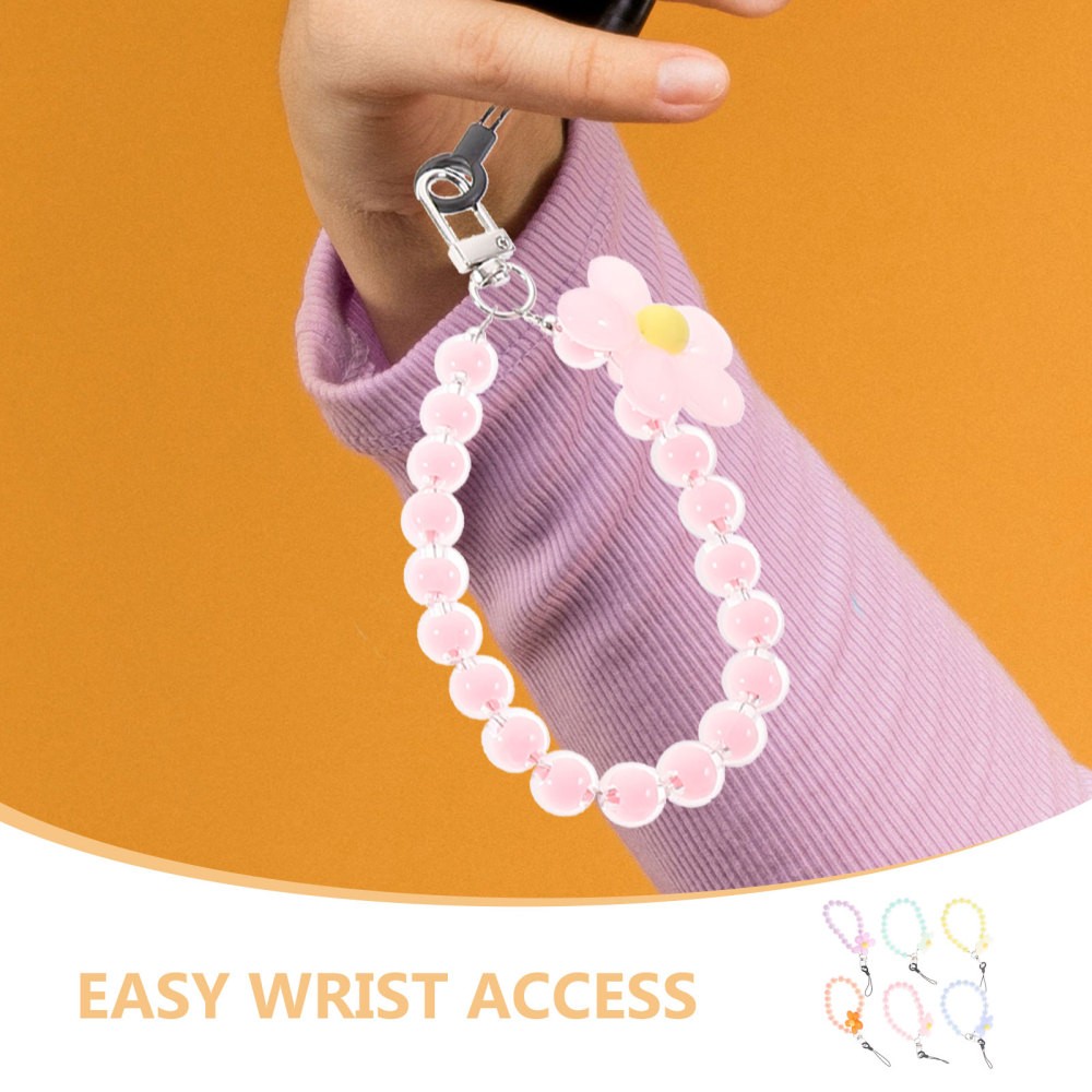 6 Pcs Phone Charm Bracelet Lanyard Beaded Wrist Strap With Flower Pendant