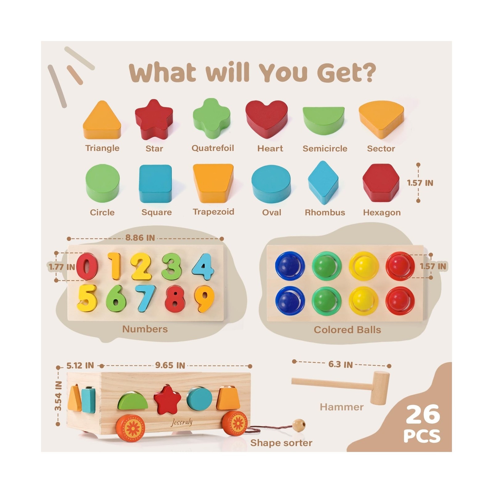 Shape Sorter - Wooden Pound A Ball and Montessori Number Puzzle Set... Fast Ship