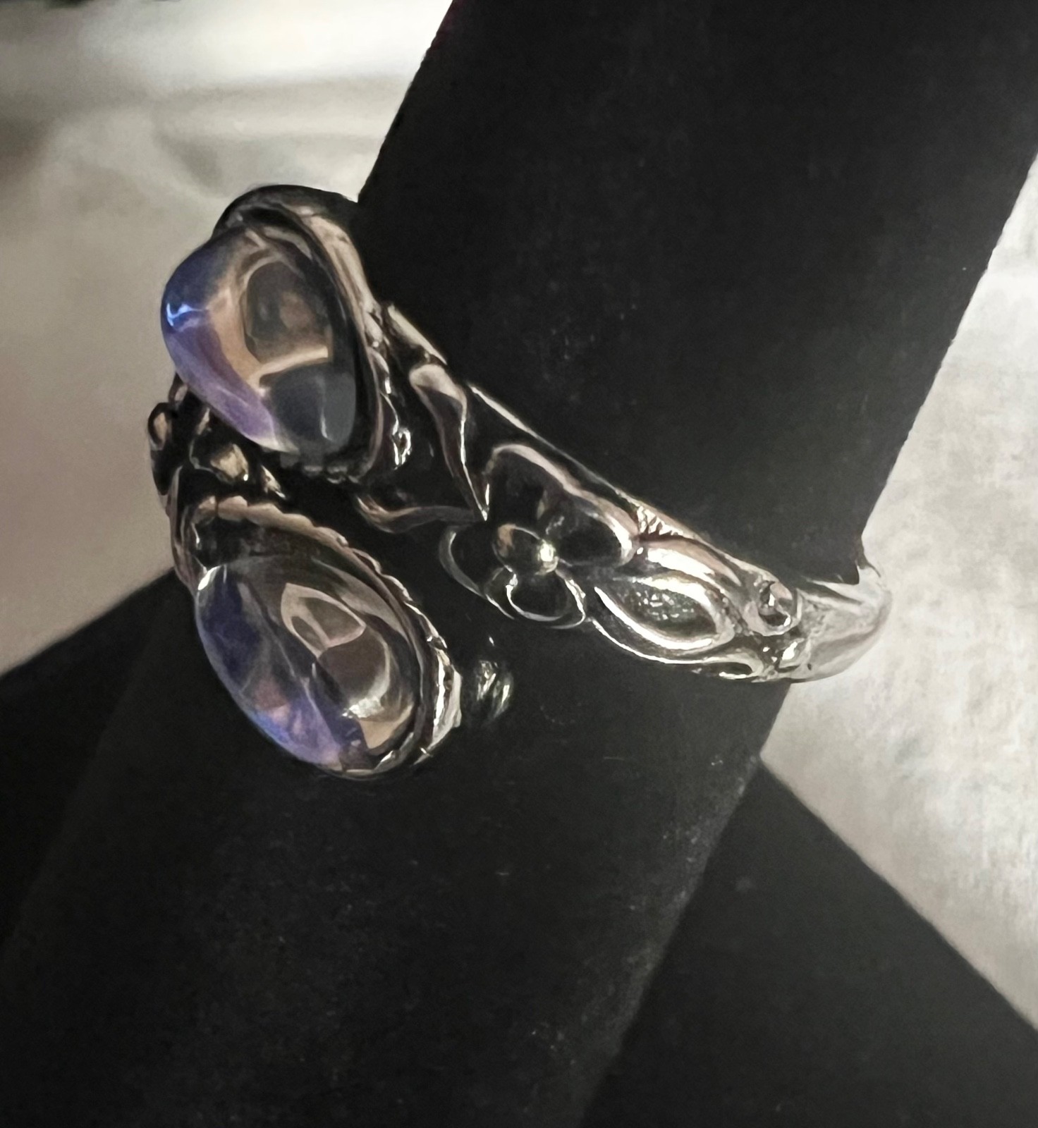 как выглядит Moonstone Boho style adjustable ring with a synthetic blue stone New фото