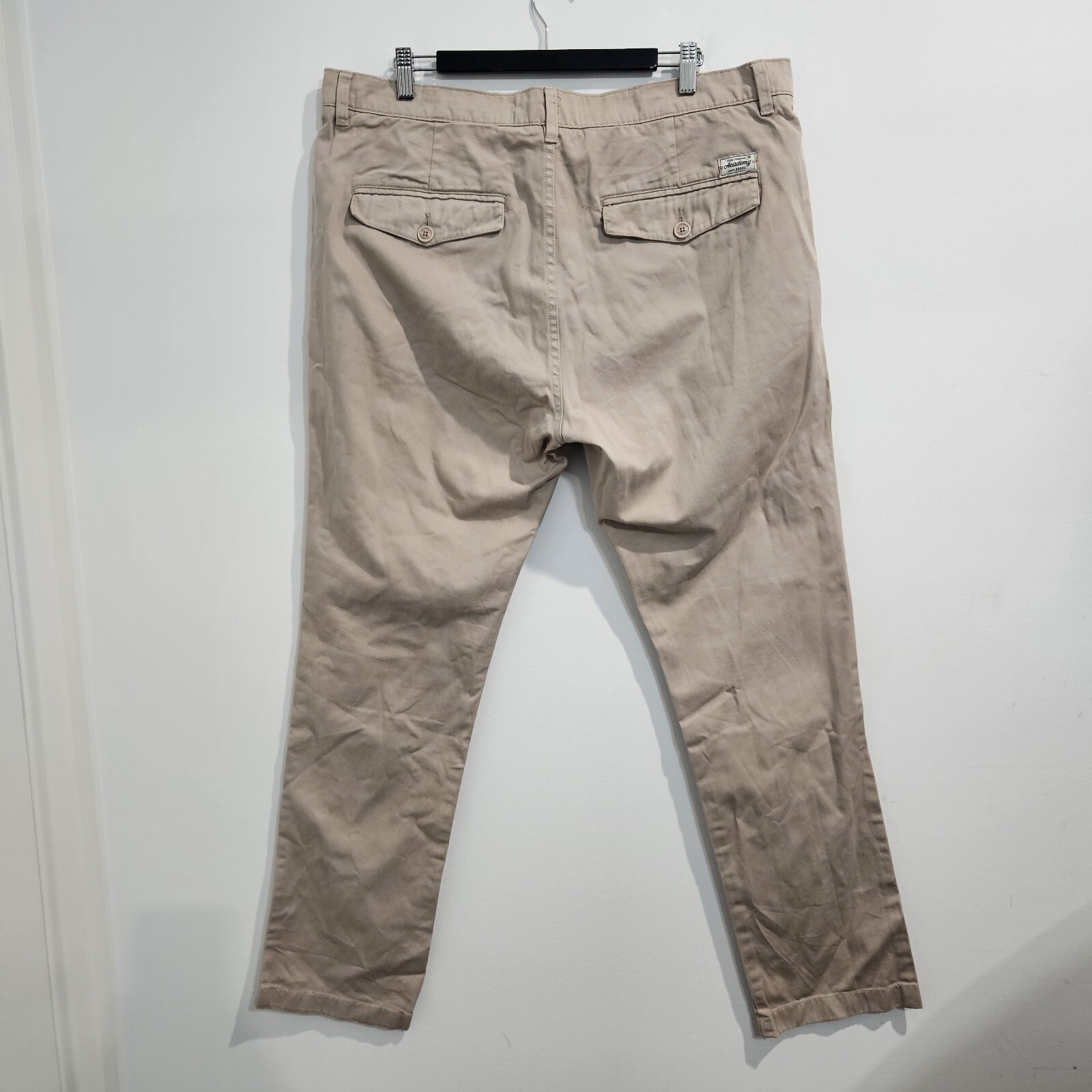 The Academy Brand Mens Chino Pants Size Size 38 Khaki Tan Straight Fit Cotton