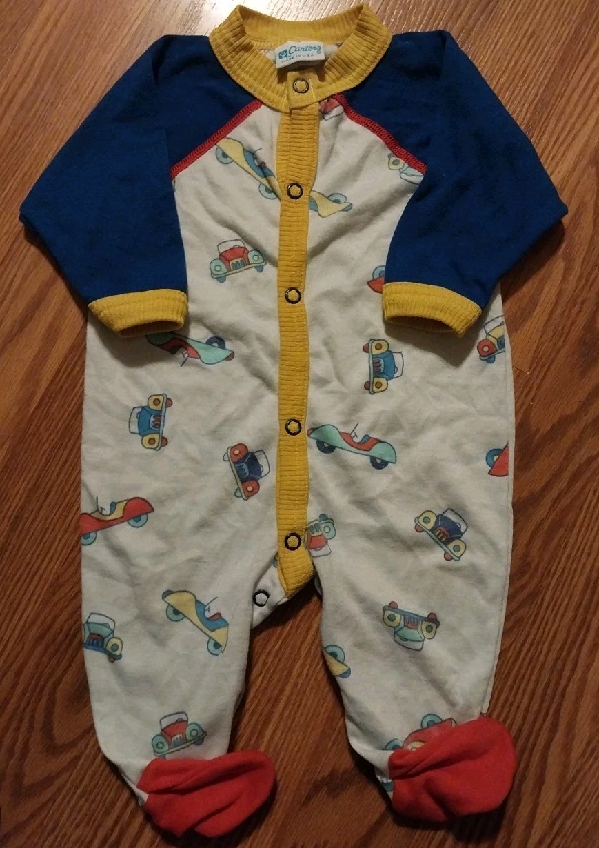 VINTAGE Carter's Baby Footed Pajamas Medium 12-17 lbs Automobiles Made In USA