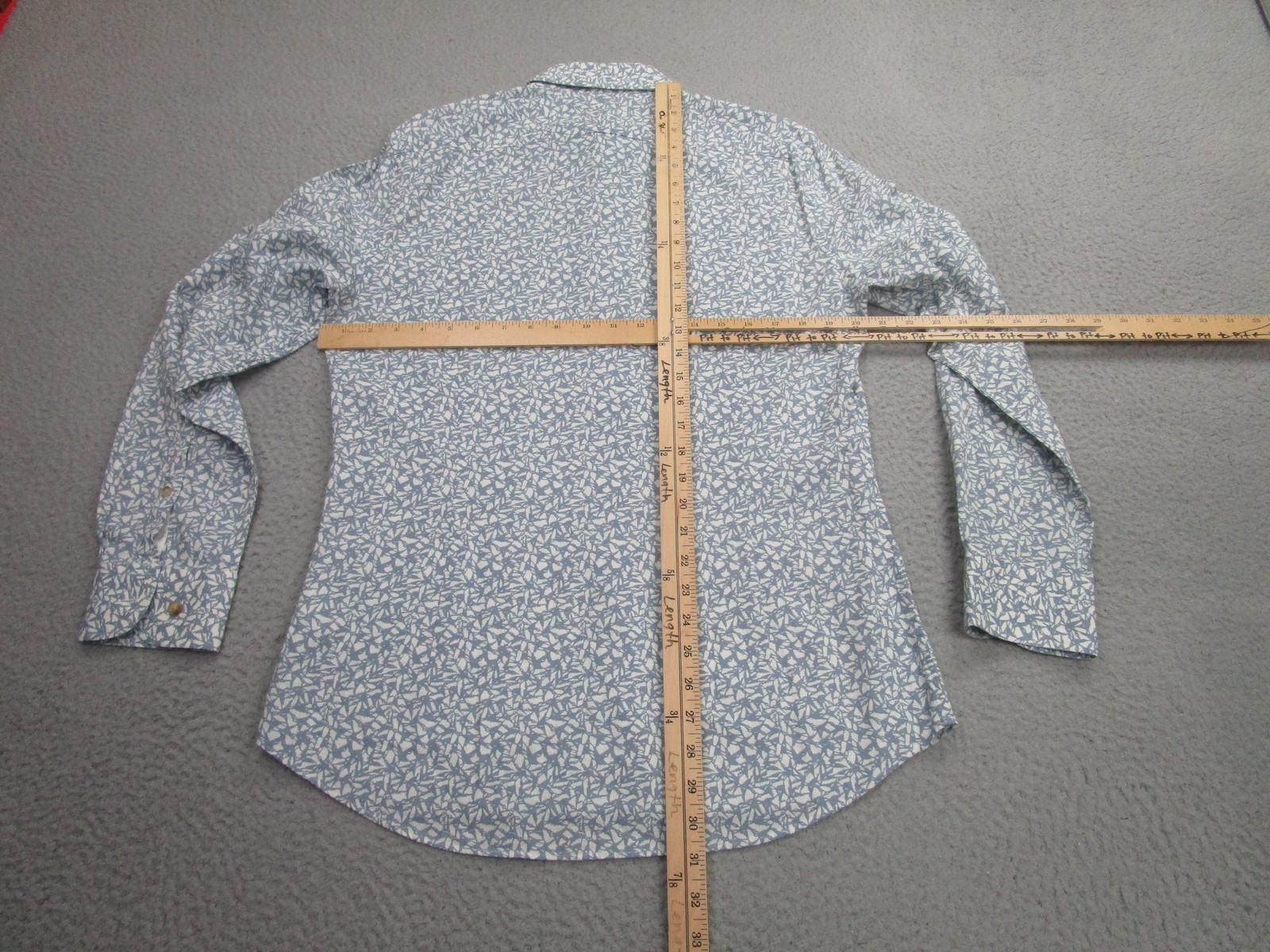 как выглядит Charles Tyrwhitt Shirt Mens Medium Blue Leaf Print Extra Slim Fit Button Down фото