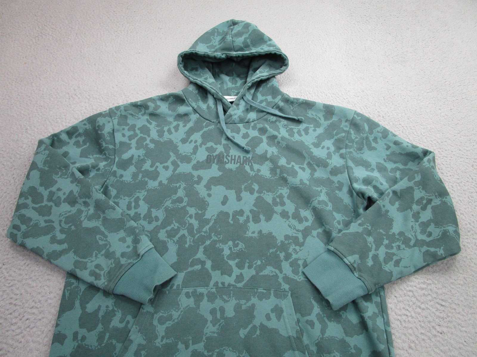 Gymshark Hoodie Sweatshirt Mens Medium Green Camo Pullover Kangaroo Pocket Gym