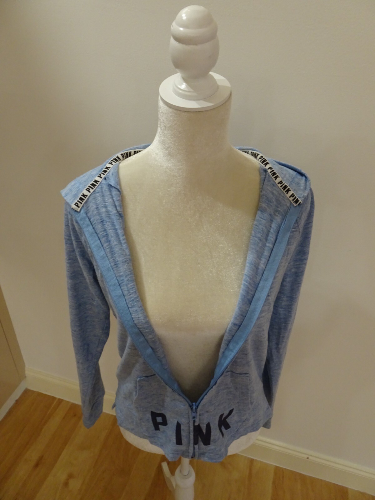 как выглядит PINK Victoria Secret Hoodie Womens Size XS/XP Zip Up heather Blue EUC фото
