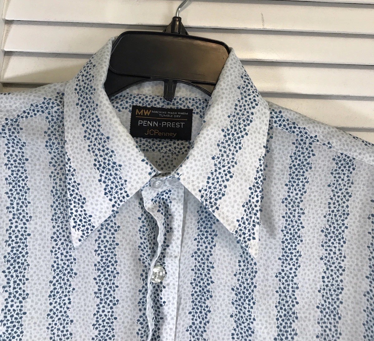 Vintage 60/70s Penn Prest JC Penney Button Up Shirt Mens M 41 White Floral