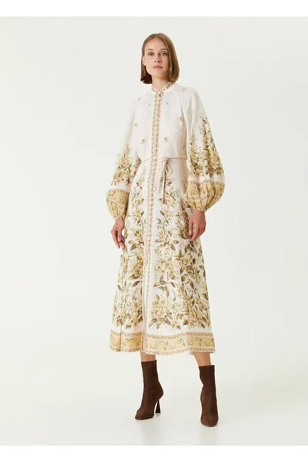 ZIMMERMANN Golden Buttoned Midi Dress Color: Sage toile floral Size 1/ US 6