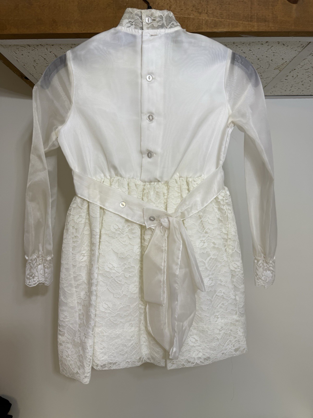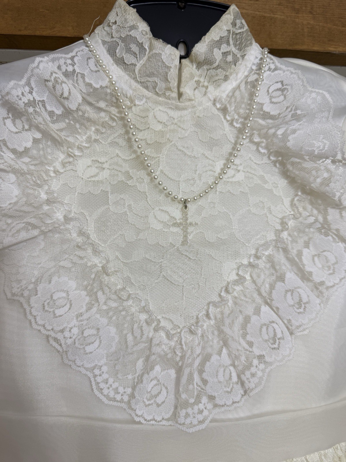 как выглядит Vintage Girls White Communion Dress Ruffle Lace W/Viel And Bag Set Sz 4-5 фото