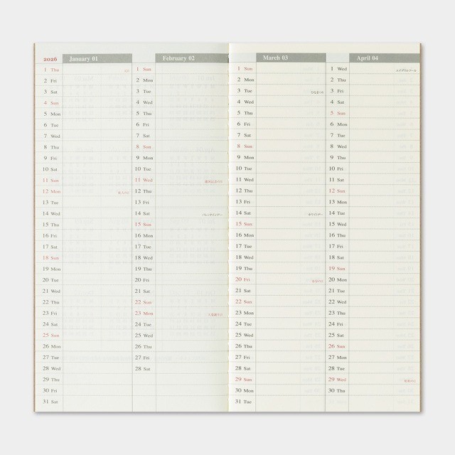 Traveler's Notebook Regular Size 2026 Weekly Vertical Schedule Refill TF